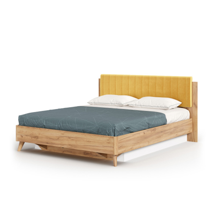 Марта-2 Кровать 1600 (с ПМ и мягкой накладкой, вертикальная стежка Phuket 1038) (Дуб Золотой/Горчично-желтый)