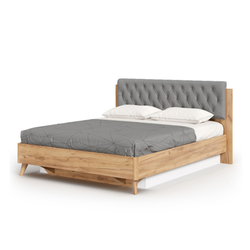 Марта-2 Кровать 1600 (с ПМ и мягкой накладкой, каретная стежка Capri 24) (Дуб Золотой/Серый)