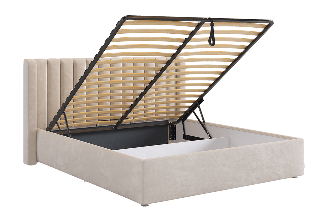 В комплект кровати входит основание с подъемным механизмом, что позволяет вам использовать пространство под кроватью для хранения одежды, постельных принадлежностей и других вещей. Это практичное решение, позволяющее оптимизировать пространство и поддерживать порядок в спальне.