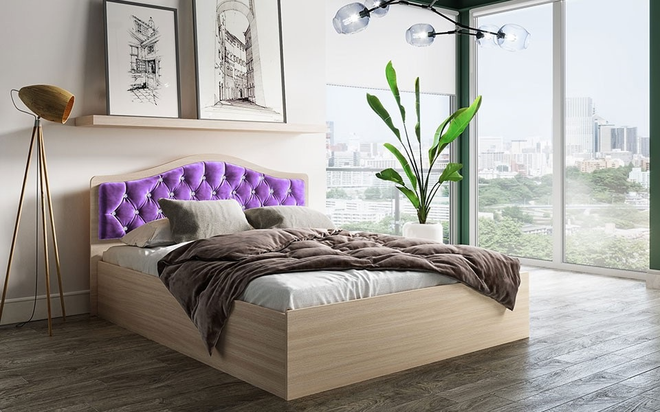 Кровать с ортопедическим основанием Дели 160х200, дуб молочный/сирень