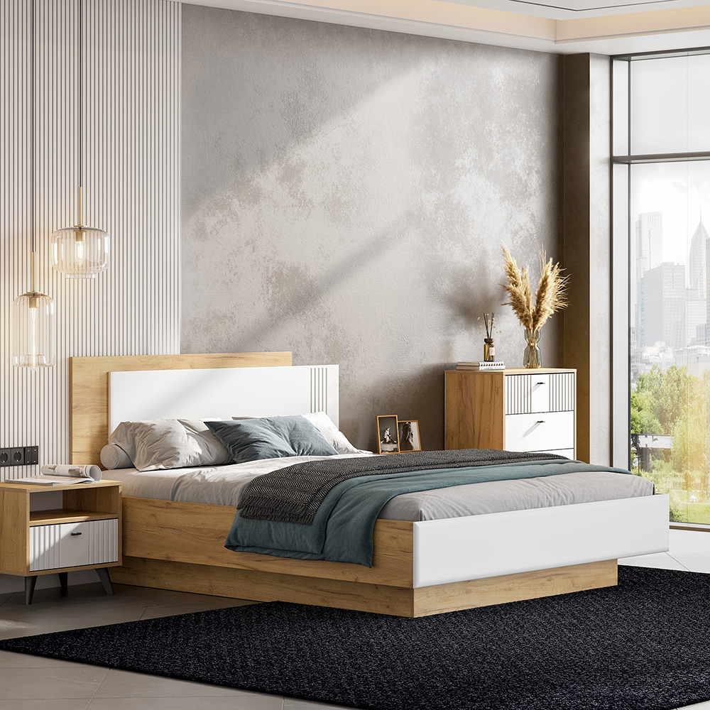 Запросить индивидуальное предложениеДвуспальная кровать Милан органично впишется в дизайн комнаты, благодаря сочетанию древесного декора и белого цвета. Привнесите в спальную комнату больше света, тепла и уюта.