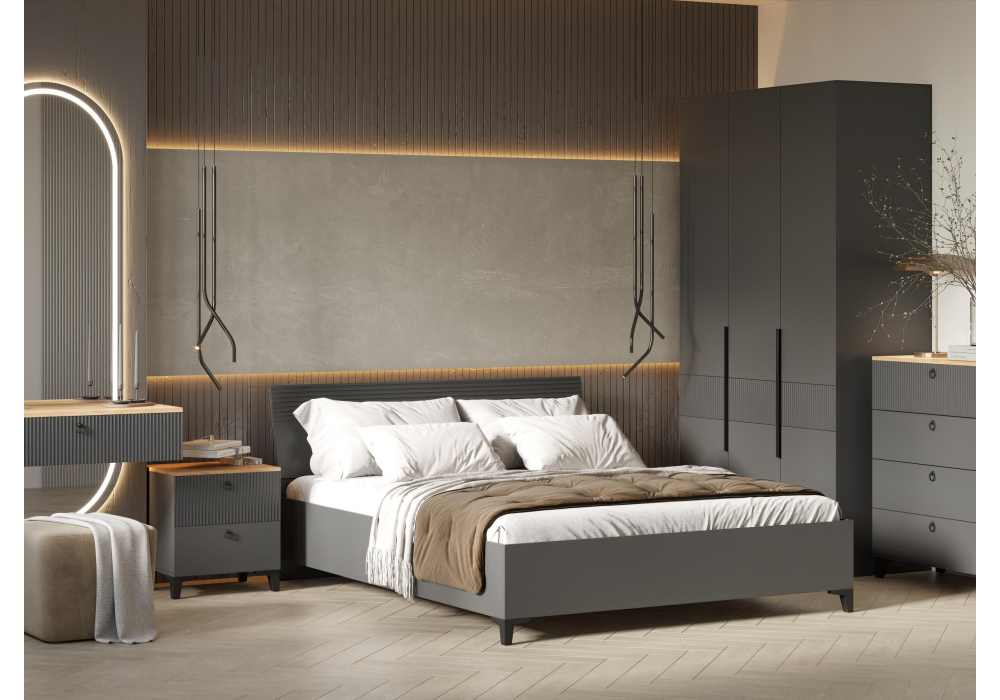 Двуспальная кровать Ника 160х200 с основанием дсп эйхория QR-17 / графит