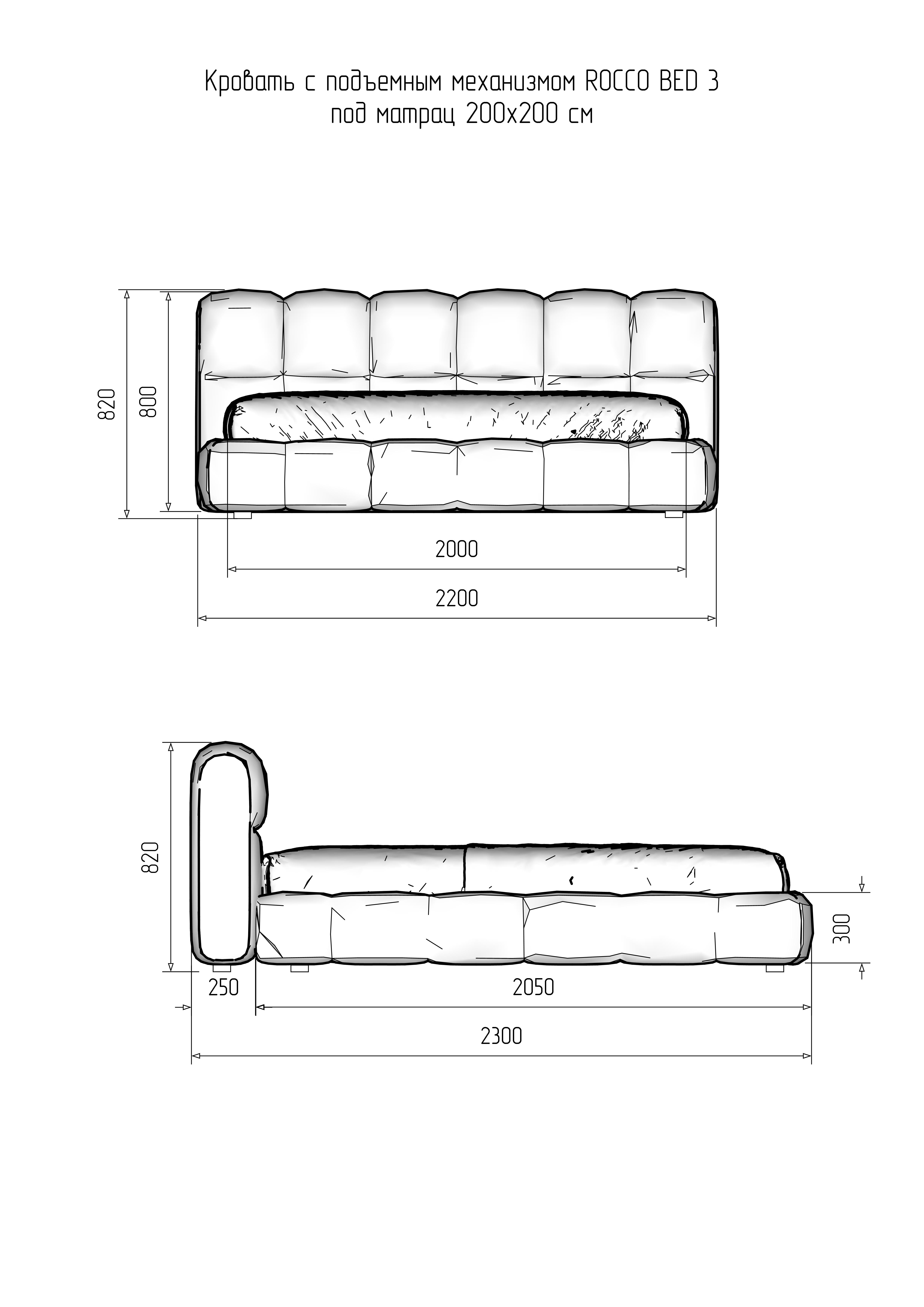 Дизайнерская кровать ROCCO BED 3, с подъёмным механизмом 200х200
