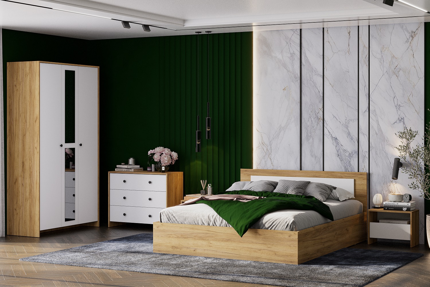 Кровать с основанием Лайт Дольче 160х200 Дуб Золотой/Белый