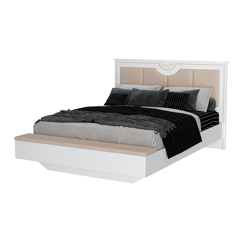 Вилла Кровать 1800 мягкая с банкеткой с кроватным основанием (Белый)