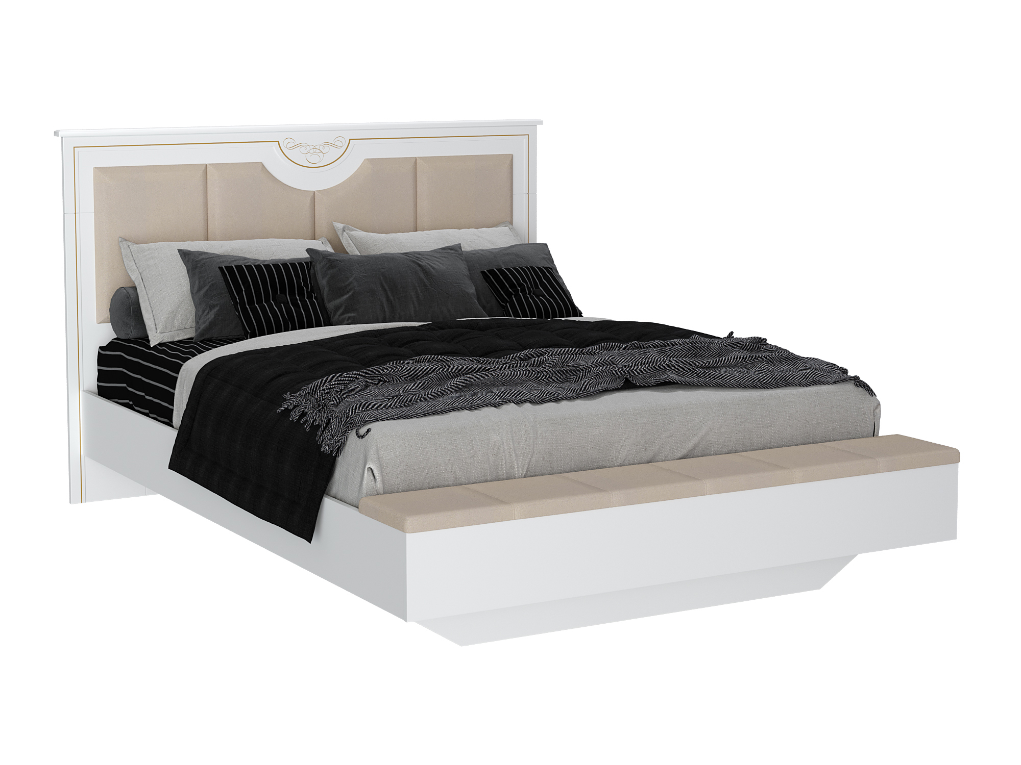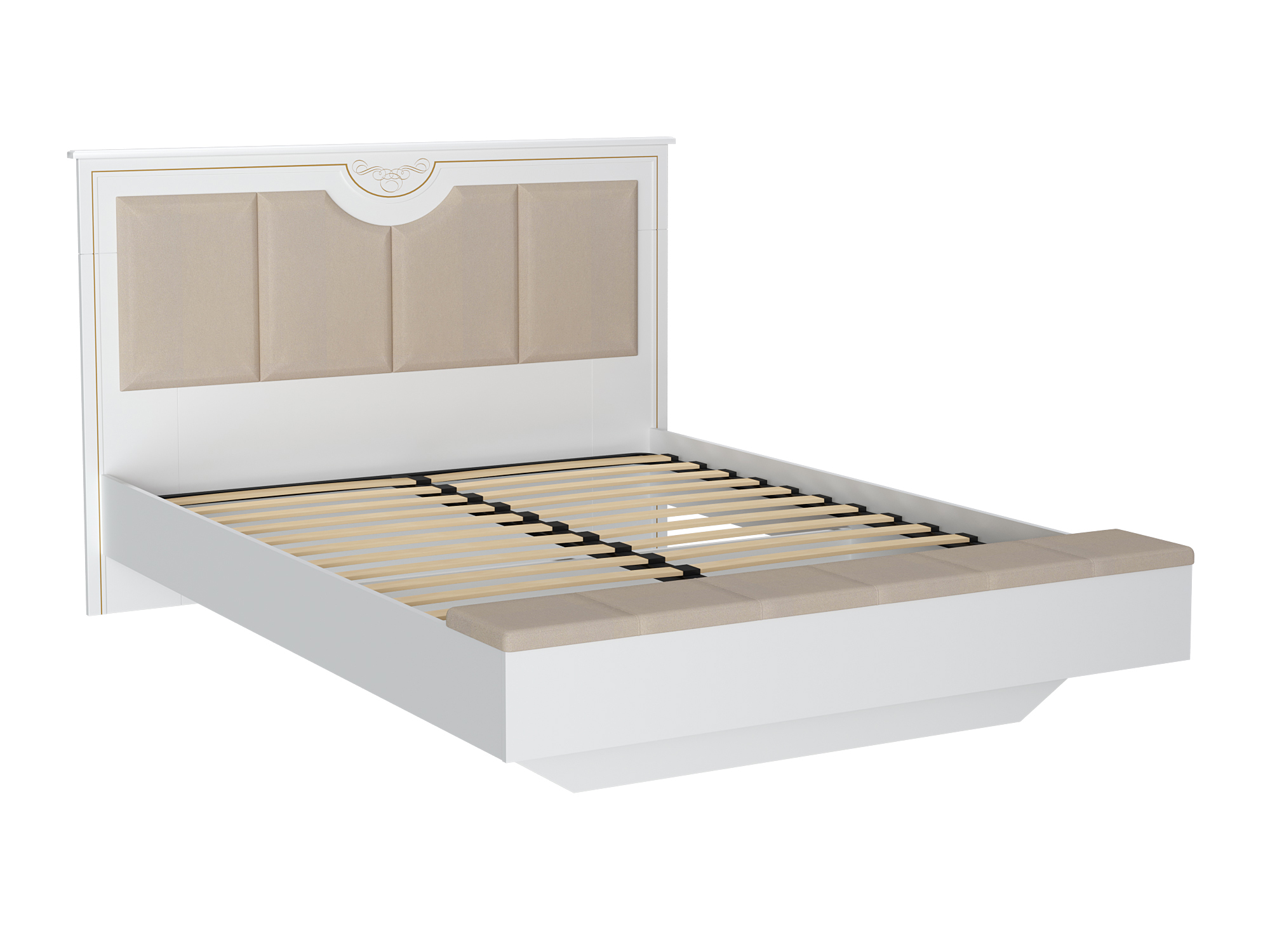 Вилла Кровать 1600 мягкая с банкеткой с кроватным основанием (Белый)
