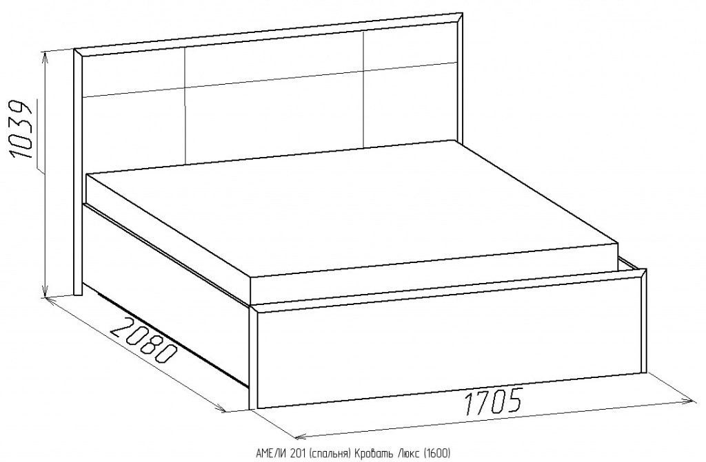 Кровать с ортопедическим основанием (металл) Амели 201 Люкс 160х200, дуб