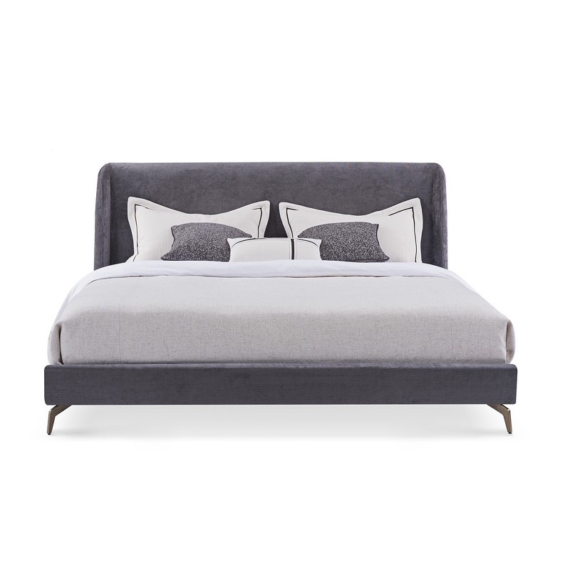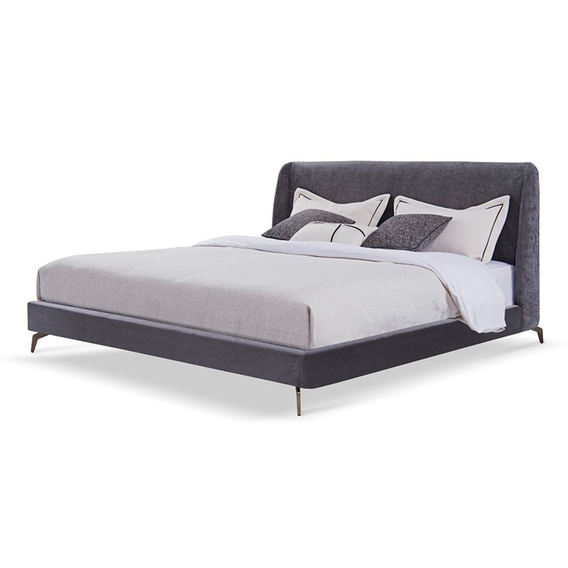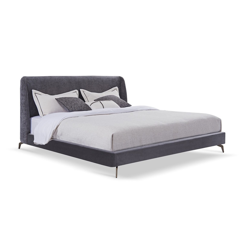 Кровать обита текстурированной тканью из ассортимента фабрики, ножки металлические с черным порошковым покрытием.