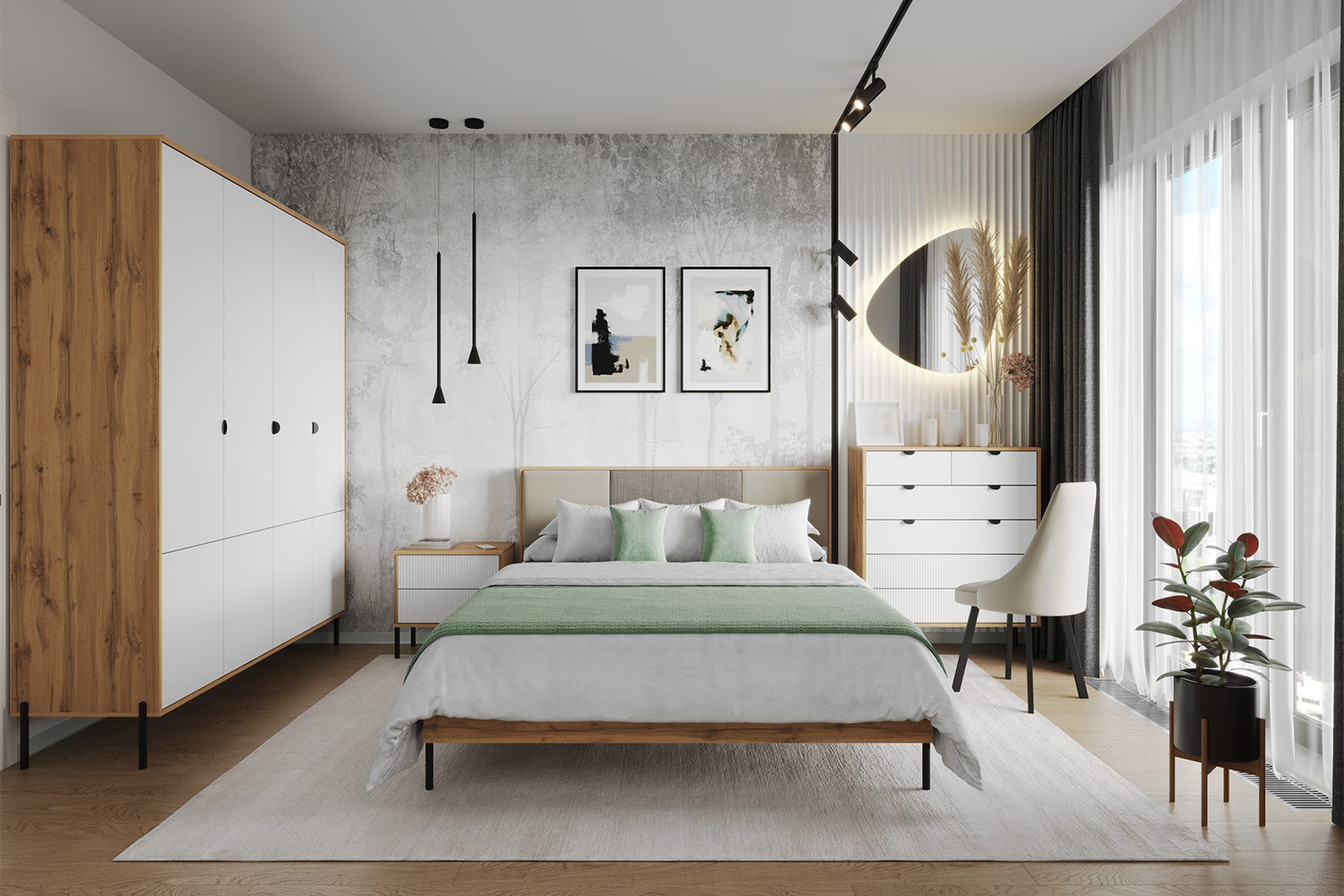 Кровать с ортопедическим основанием Кензо 72.18, Дуб вотан, Белый