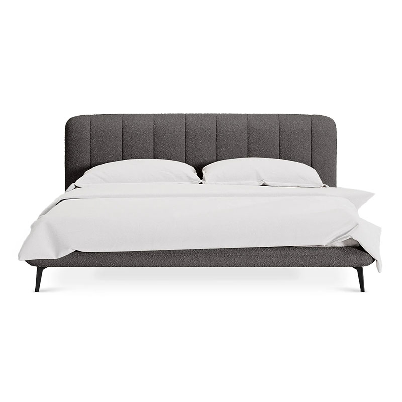 Запросить индивидуальное предложениеПрочные ножки из металла незаметно приподнимают корпус над полом. Поэтому кровать смотрится воздушно. Также это упрощает уборку. Мягкие изящные царги плавно перетекают в изголовье, единство с которым подчеркивается рельефным кантом.