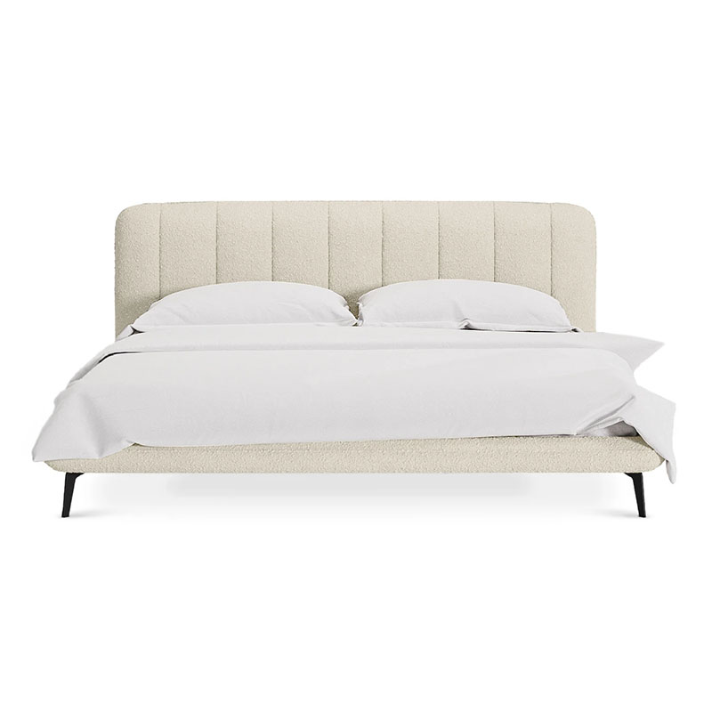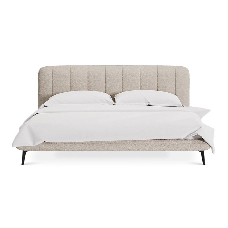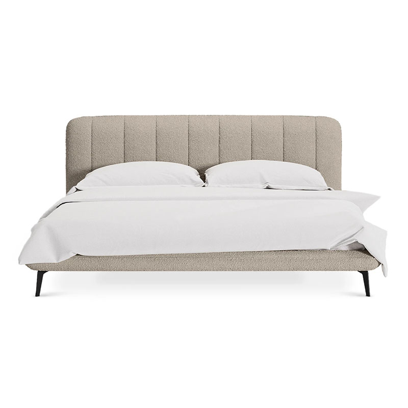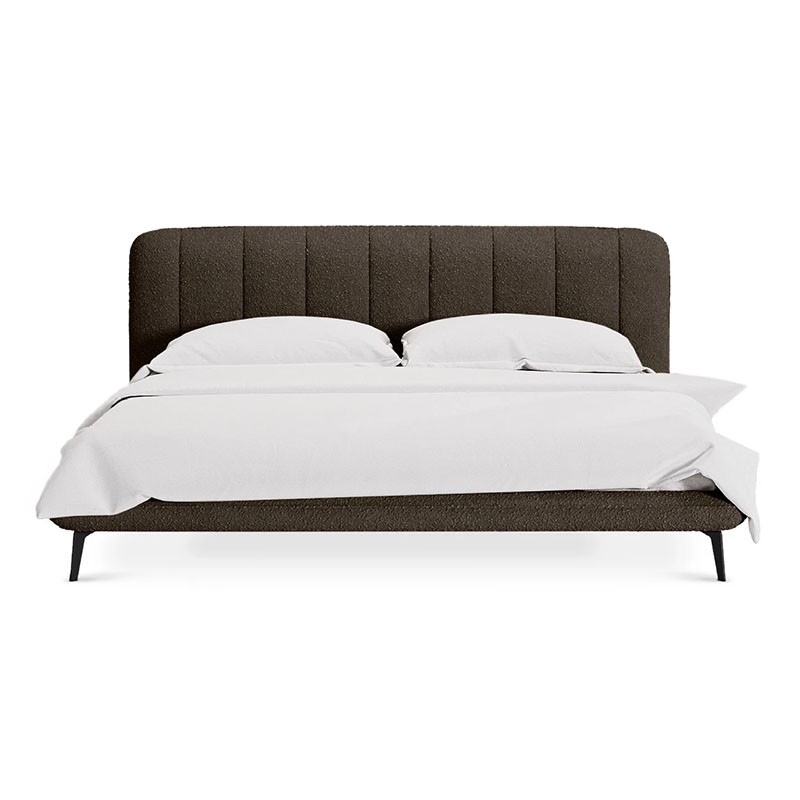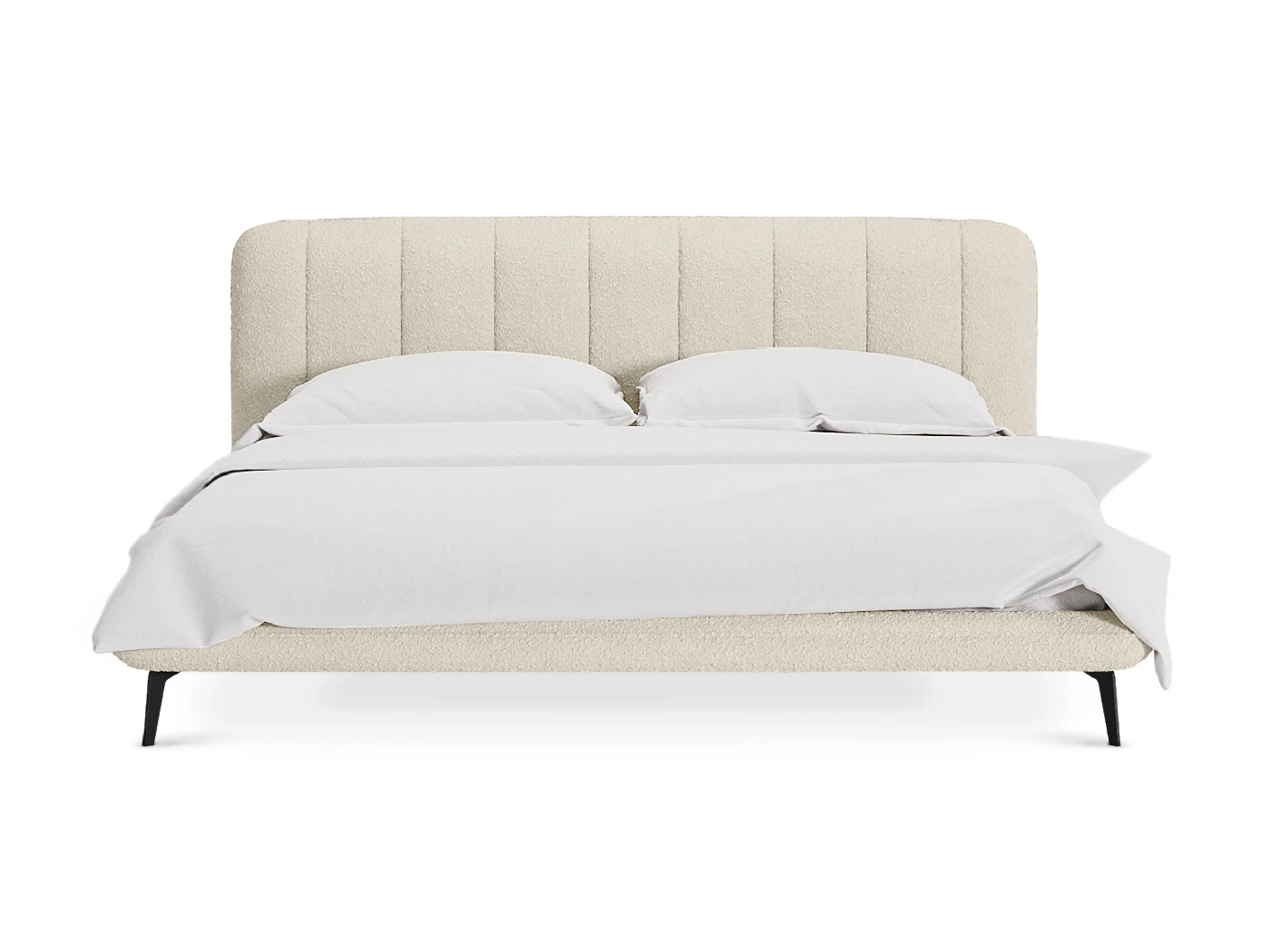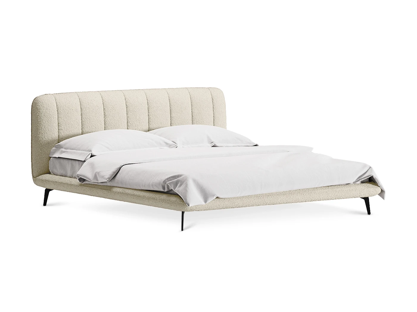 Запросить индивидуальное предложениеПрочные ножки из металла незаметно приподнимают корпус над полом. Поэтому кровать смотрится воздушно. Также это упрощает уборку. Мягкие изящные царги плавно перетекают в изголовье, единство с которым подчеркивается рельефным кантом.