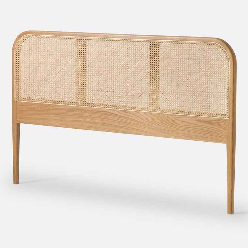 Изголовье кровати из дуба и плетеного ротанга Madara 160 см бежевый