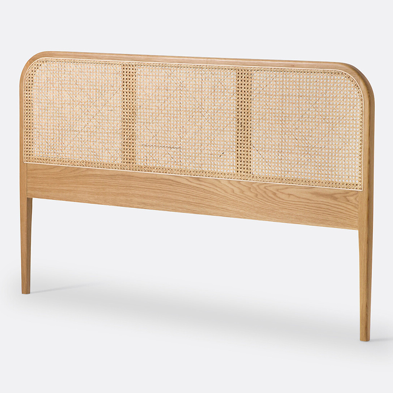 Изголовье кровати из дуба и плетеного ротанга Madara 180 см бежевый