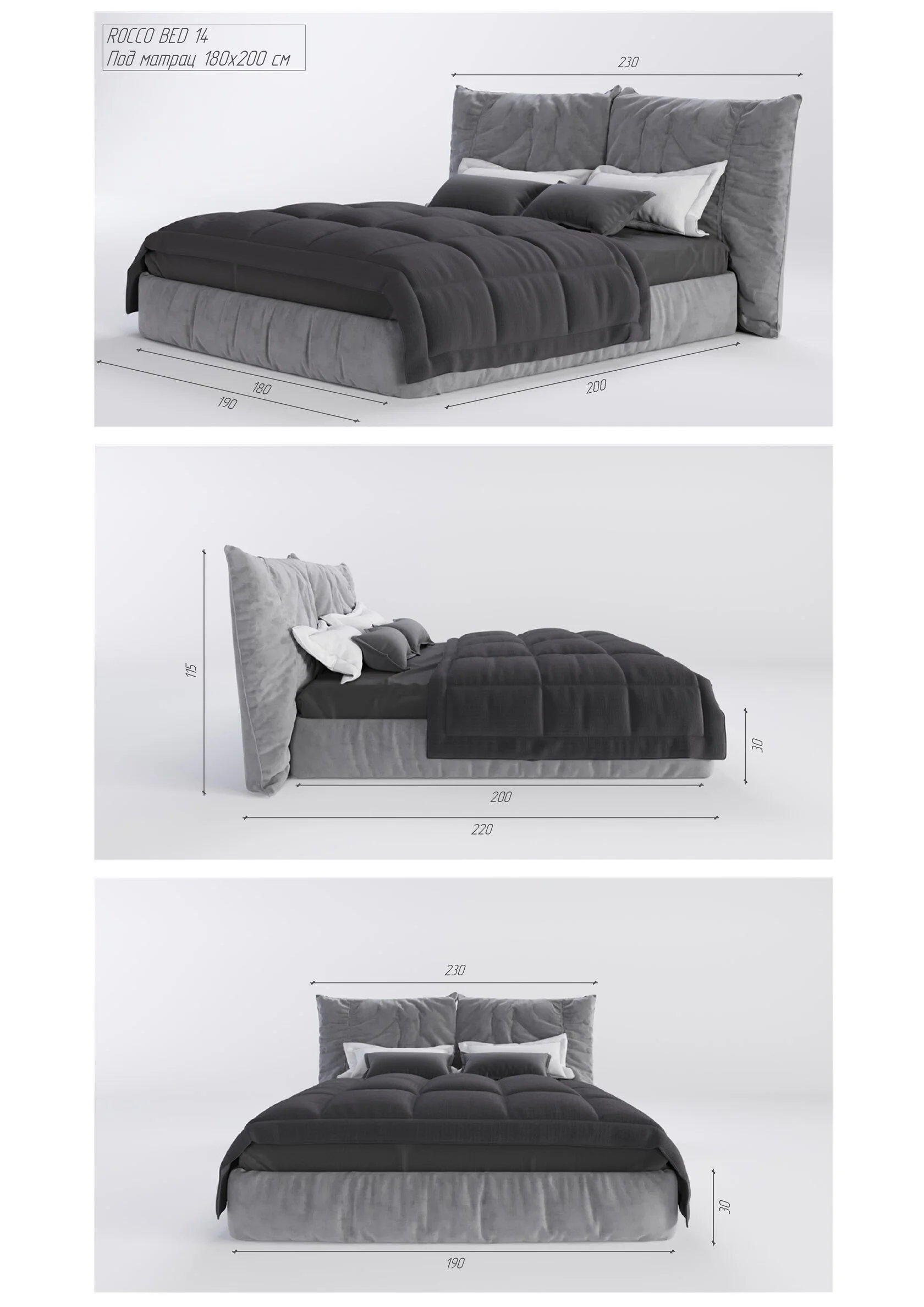 Дизайнерская кровать ROCCO BED 14 с подъемным механизмом 180x200