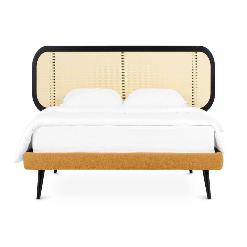 Изголовье представляет собой рамку из плиты МДФ с натянутым полотном из искусственного ротанга.