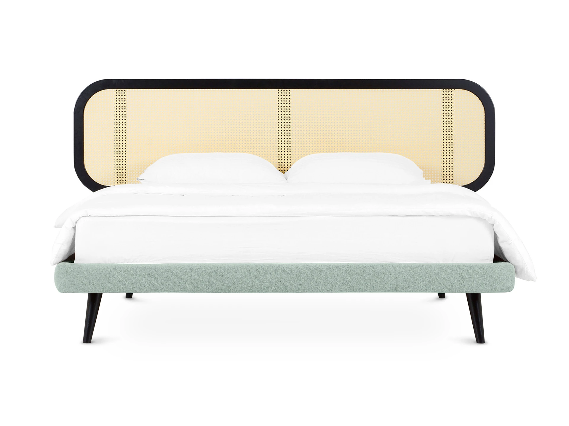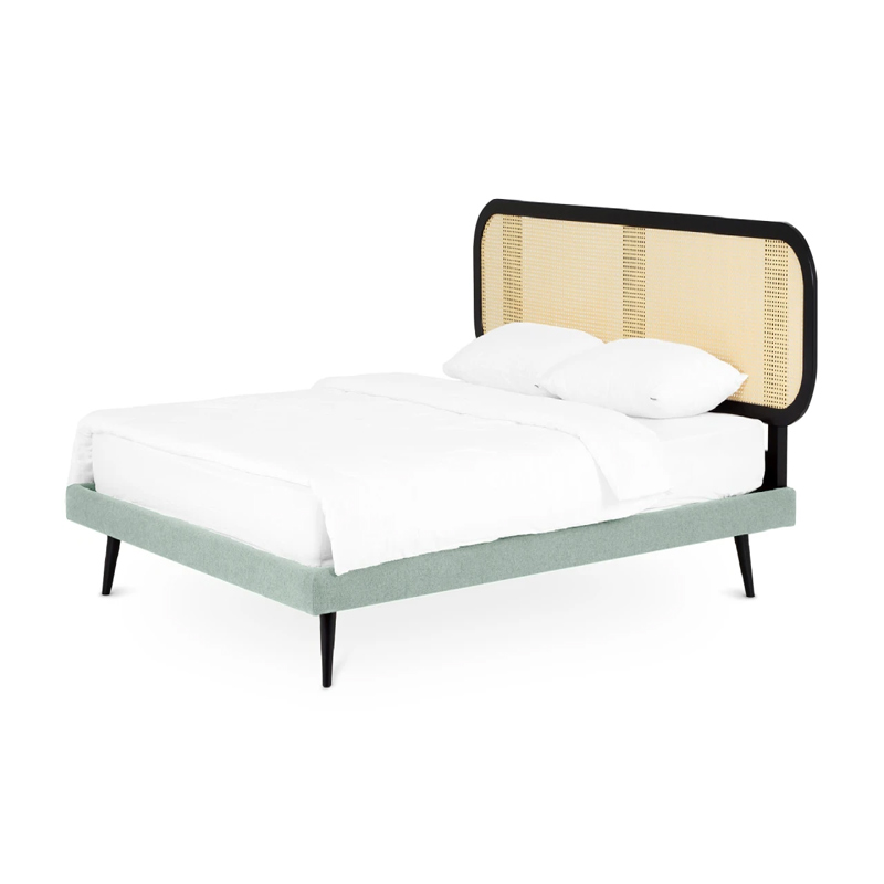 Изголовье представляет собой рамку из плиты МДФ с натянутым полотном из искусственного ротанга.