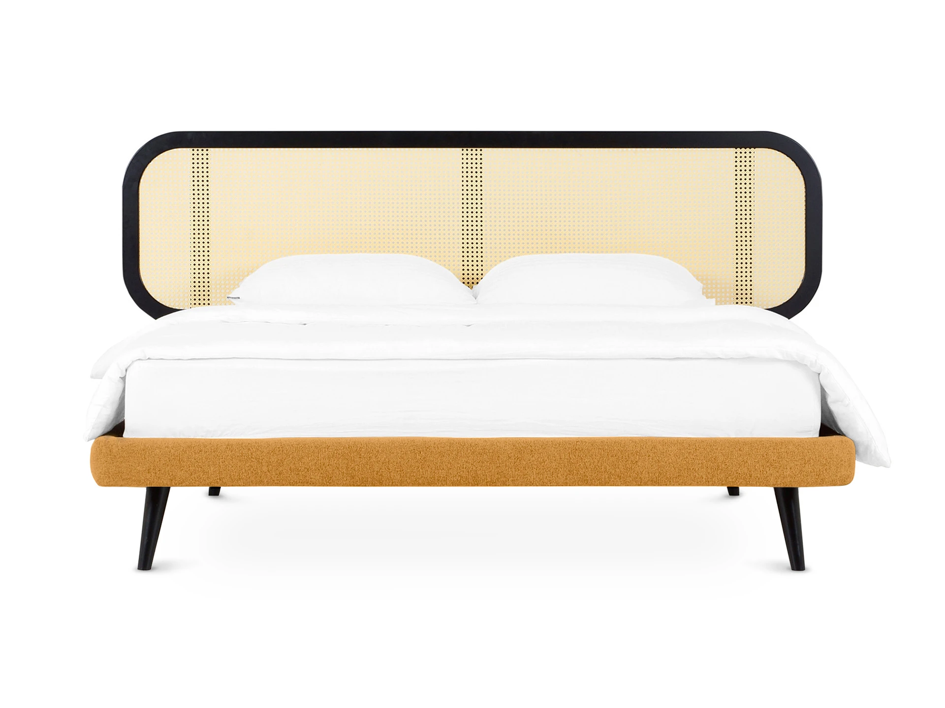 Изголовье представляет собой рамку из плиты МДФ с натянутым полотном из искусственного ротанга.