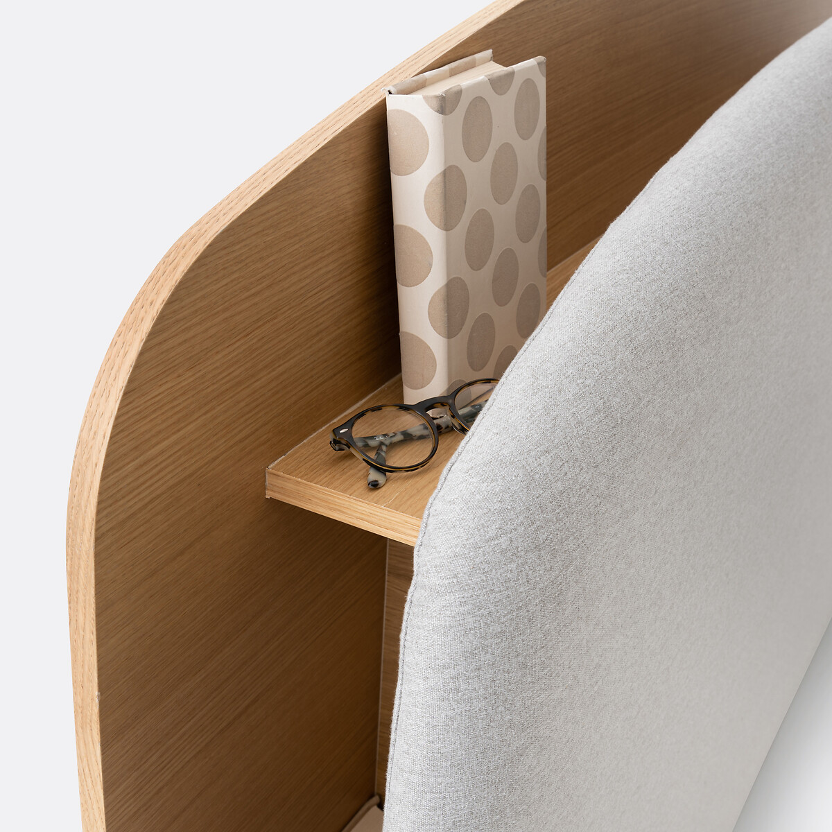 Запросить индивидуальное предложениеБлагодаря округлым линиям и уютной обивке Aoni привносит в спальню нотку мягкости. Ниши для вещей хорошо продуманы.