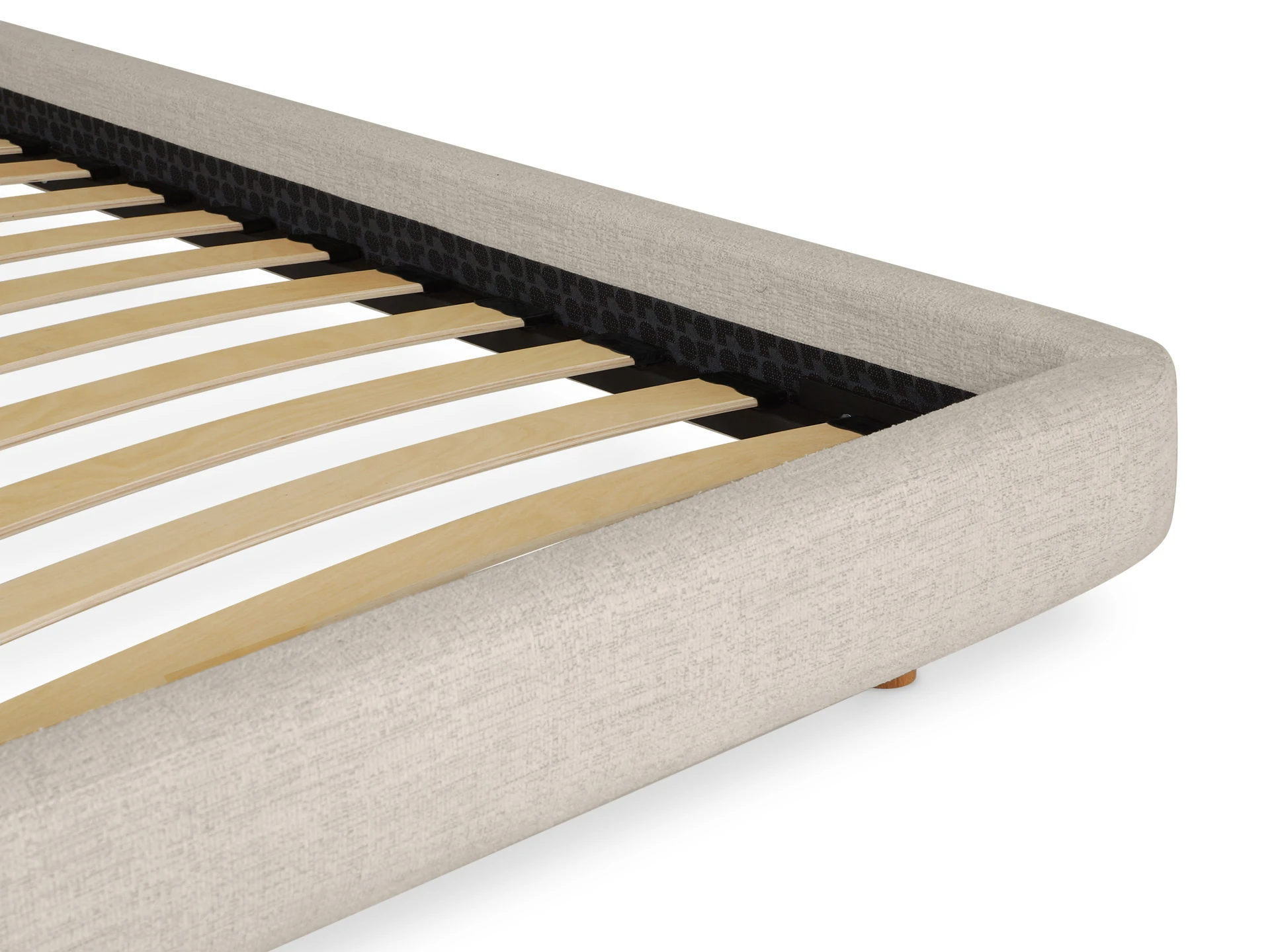 Миниатюрные ножки из дерева приподнимают кровать над полом. Поэтому конструкция смотрится легко и воздушно. Также упрощается процесс уборки. Модель универсальна. Стильно подружится с пространством любого характера от сканди до оригинальной эклектики.