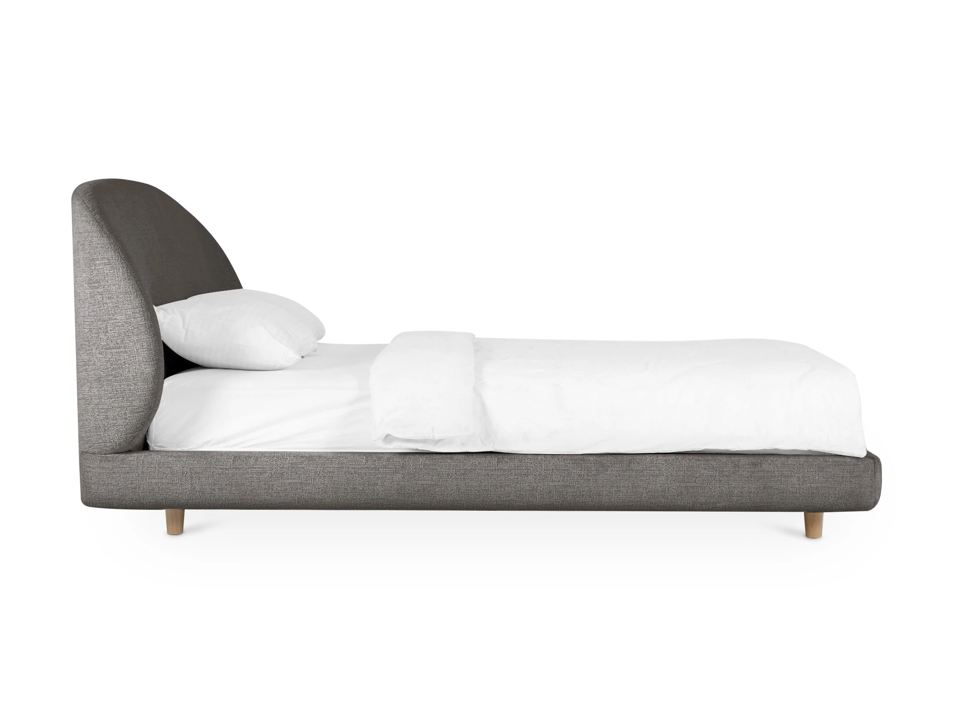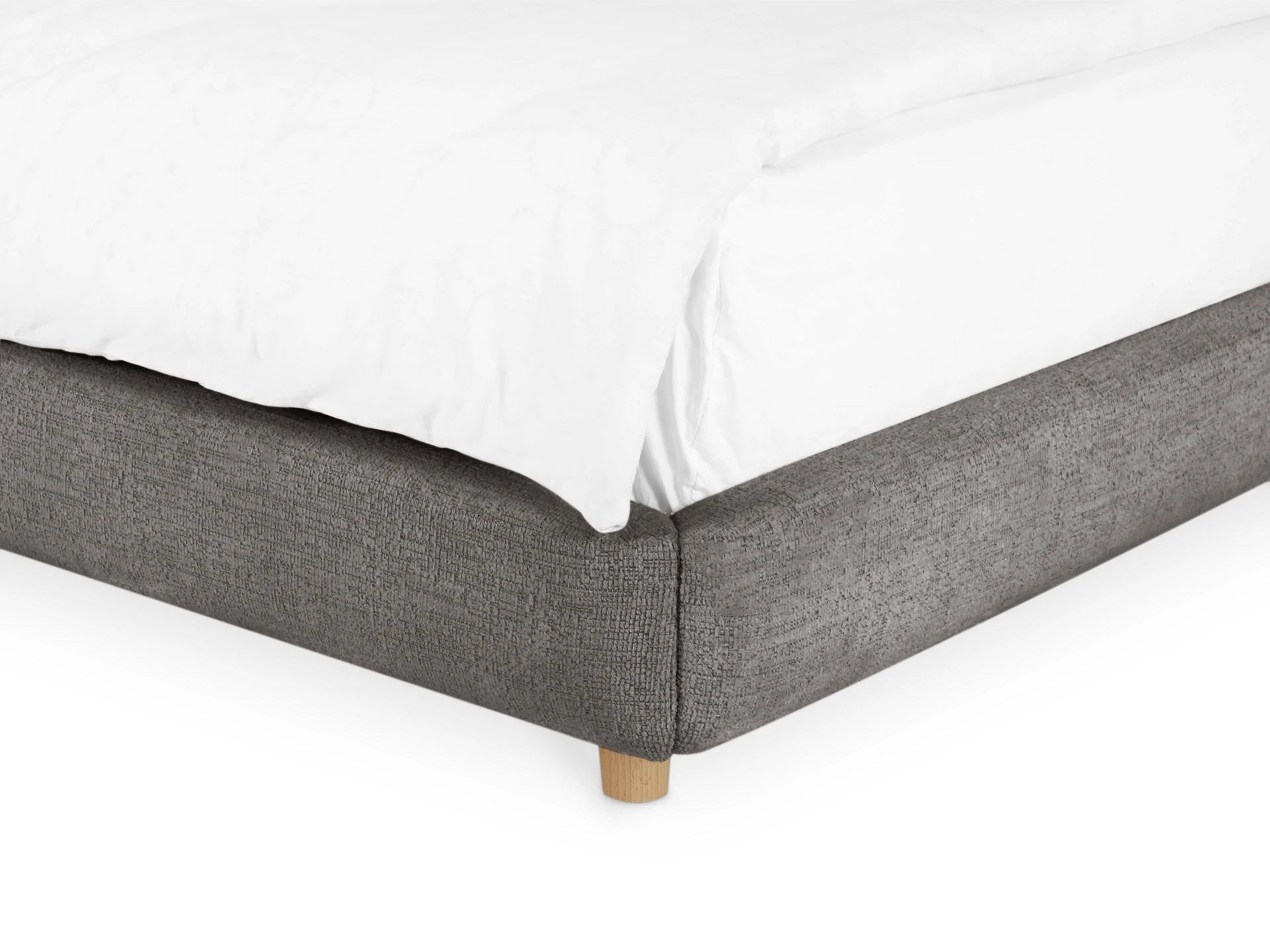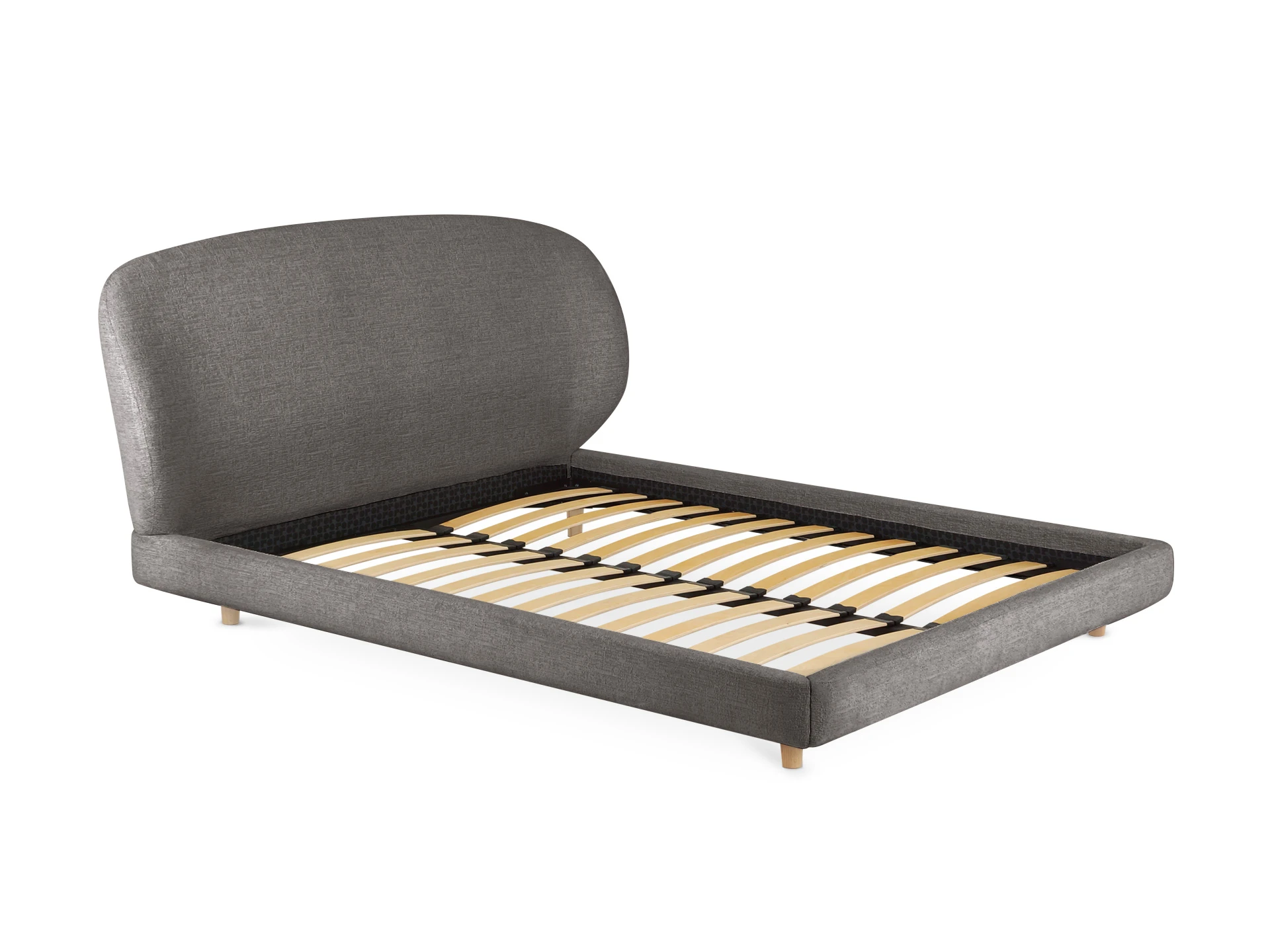 Миниатюрные ножки из дерева приподнимают кровать над полом. Поэтому конструкция смотрится легко и воздушно. Также упрощается процесс уборки. Модель универсальна. Стильно подружится с пространством любого характера от сканди до оригинальной эклектики.