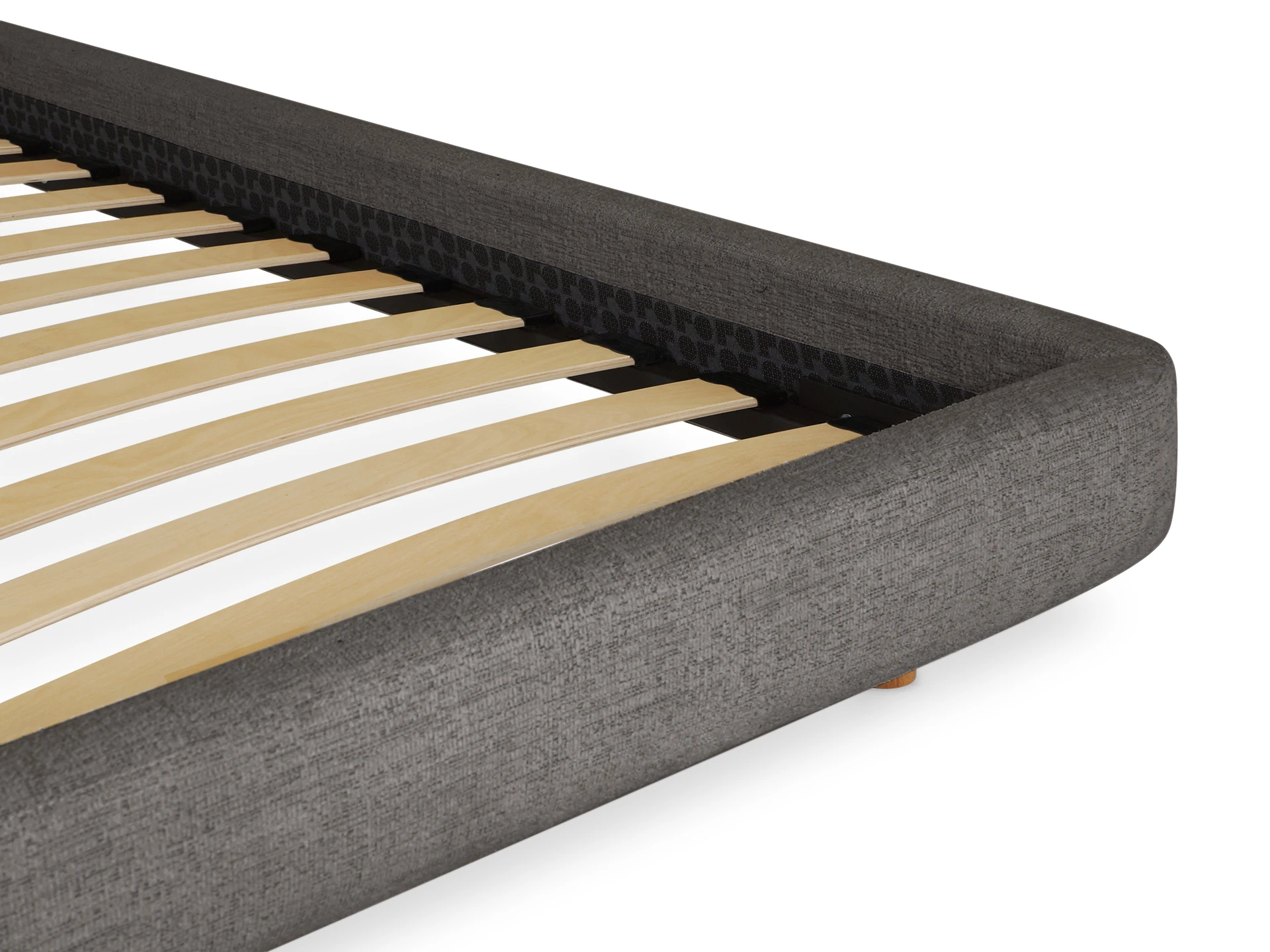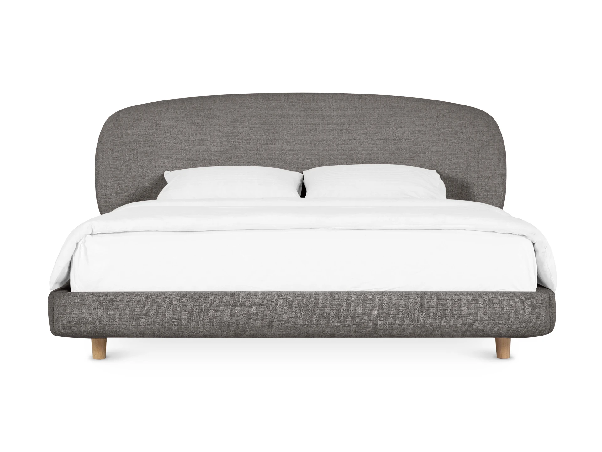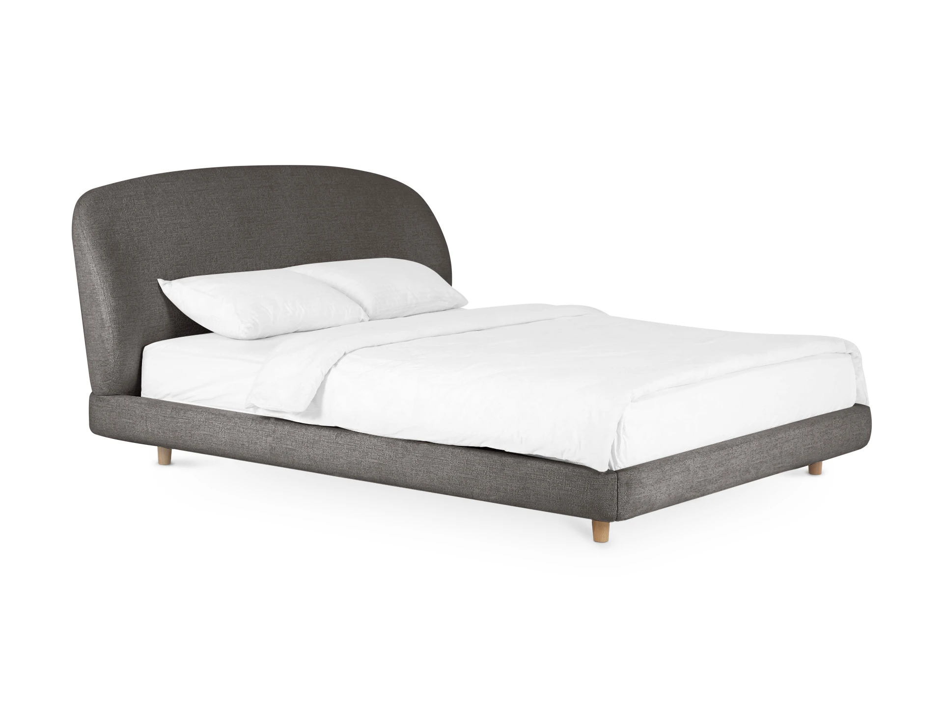 Миниатюрные ножки из дерева приподнимают кровать над полом. Поэтому конструкция смотрится легко и воздушно. Также упрощается процесс уборки. Модель универсальна. Стильно подружится с пространством любого характера от сканди до оригинальной эклектики.