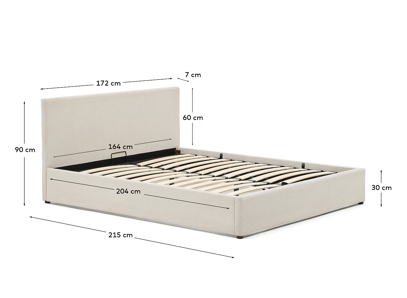 Кровать Nahiri бежевого цвета из шенилла с ящиком для хранения 160 x 200 см