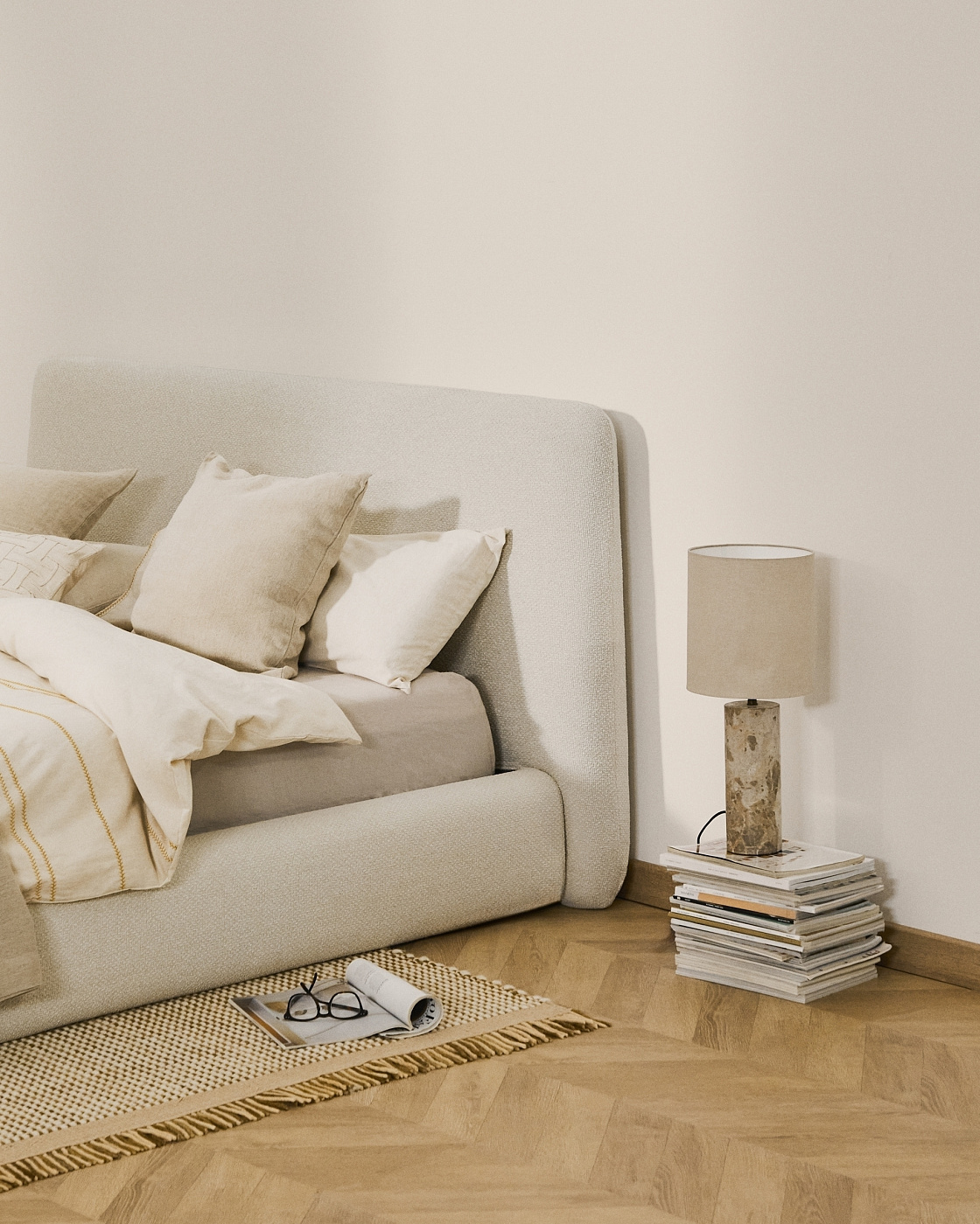 Кровать Martina со съемным чехлом из шенилла цвета экрю 180 x 200