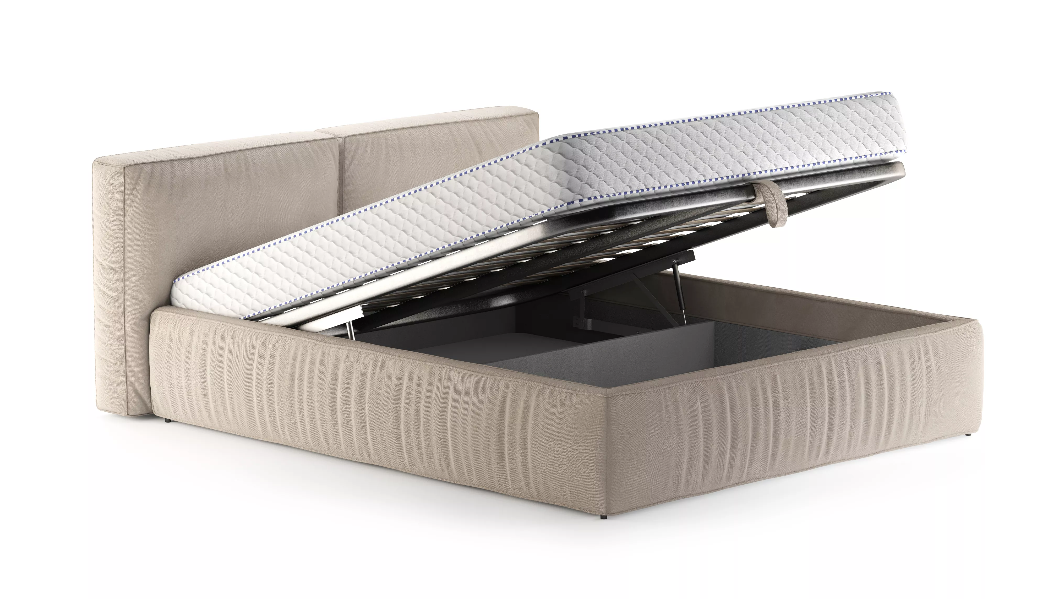 Вместительный ящик находящийся под основанием пригодится для хранения сезонной одежды, постельных принадлежностей, столового текстиля. Короб без усилий открывается с помощью подъёмного механизма на газлифтах. Ортопедическое основание распределяет нагрузку по зонам жесткости, что позволяет сохранить здоровье во время сна, снять мышечное напряжение и увеличить срок службы матраса. Цена за изделие без подъемного механизма на 8000 тысяч дешевле