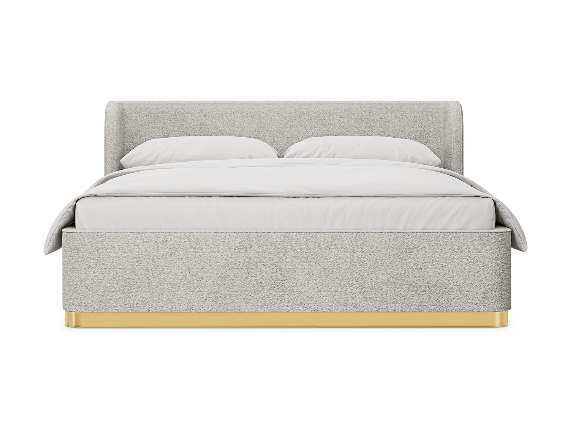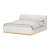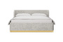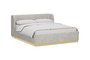 Кровать оснащена металлическим подъемным основанием с гибкими ламелями, под которым находится внутреннее отделение, предназначенное для хранения белья или других предметов. Спинка и царги кровати выполнены из плиты ЛДСтП т.22мм, брусков и березовой фанеры. Настилы из пенополиуретана и синтепона. Подиум сделан из плиты МДФ и брусков. Нижнюю часть подиума украшает металлическая лента из нержавеющей стали с покрытием «матовое золото». Дно бельевого ящика: плита ЛДСтП т.16мм «Белая Гладкая».
