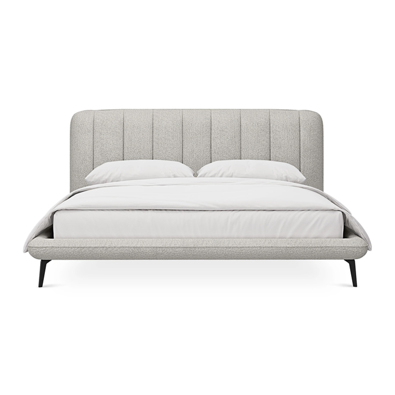 Прочные ножки из металла незаметно приподнимают корпус над полом. Поэтому кровать смотрится воздушно. Также это упрощает уборку. Мягкие изящные царги плавно перетекают в изголовье, единство с которым подчеркивается рельефным кантом.