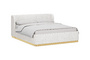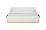 Кровать оснащена металлическим подъемным основанием с гибкими ламелями, под которым находится внутреннее отделение, предназначенное для хранения белья или других предметов. Спинка и царги кровати выполнены из плиты ЛДСтП т.22мм, брусков и березовой фанеры. Настилы из пенополиуретана и синтепона. Подиум сделан из плиты МДФ и брусков. Нижнюю часть подиума украшает металлическая лента из нержавеющей стали с покрытием «матовое золото». Дно бельевого ящика: плита ЛДСтП т.16мм «Белая Гладкая».