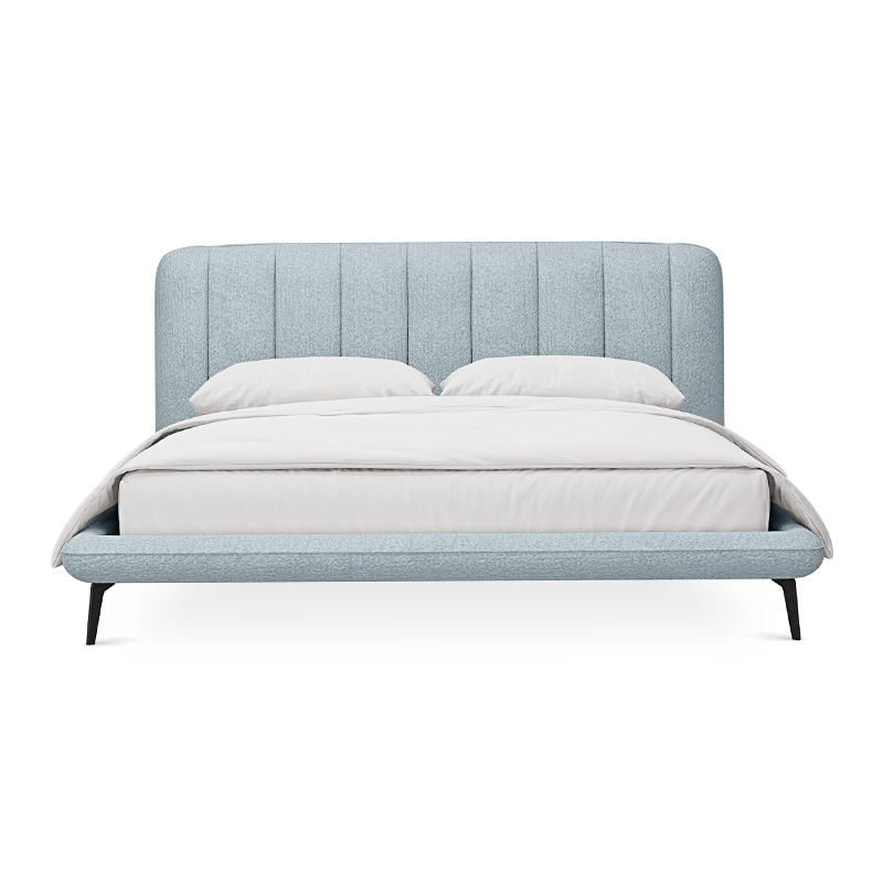Прочные ножки из металла незаметно приподнимают корпус над полом. Поэтому кровать смотрится воздушно. Также это упрощает уборку. Мягкие изящные царги плавно перетекают в изголовье, единство с которым подчеркивается рельефным кантом.