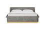 Кровать оснащена металлическим подъемным основанием с гибкими ламелями, под которым находится внутреннее отделение, предназначенное для хранения белья или других предметов. Спинка и царги кровати выполнены из плиты ЛДСтП т.22мм, брусков и березовой фанеры. Настилы из пенополиуретана и синтепона. Подиум сделан из плиты МДФ и брусков. Нижнюю часть подиума украшает металлическая лента из нержавеющей стали с покрытием «матовое золото». Дно бельевого ящика: плита ЛДСтП т.16мм «Белая Гладкая».