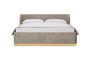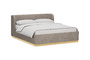 Кровать оснащена металлическим подъемным основанием с гибкими ламелями, под которым находится внутреннее отделение, предназначенное для хранения белья или других предметов. Спинка и царги кровати выполнены из плиты ЛДСтП т.22мм, брусков и березовой фанеры. Настилы из пенополиуретана и синтепона. Подиум сделан из плиты МДФ и брусков. Нижнюю часть подиума украшает металлическая лента из нержавеющей стали с покрытием «матовое золото». Дно бельевого ящика: плита ЛДСтП т.16мм «Белая Гладкая».