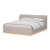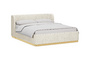 Кровать оснащена металлическим подъемным основанием с гибкими ламелями, под которым находится внутреннее отделение, предназначенное для хранения белья или других предметов. Спинка и царги кровати выполнены из плиты ЛДСтП т.22мм, брусков и березовой фанеры. Настилы из пенополиуретана и синтепона. Подиум сделан из плиты МДФ и брусков. Нижнюю часть подиума украшает металлическая лента из нержавеющей стали с покрытием «матовое золото». Дно бельевого ящика: плита ЛДСтП т.16мм «Белая Гладкая».