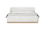 Кровать оснащена металлическим подъемным основанием с гибкими ламелями, под которым находится внутреннее отделение, предназначенное для хранения белья или других предметов. Спинка и царги кровати выполнены из плиты ЛДСтП т.22мм, брусков и березовой фанеры. Настилы из пенополиуретана и синтепона. Подиум сделан из плиты МДФ и брусков. Нижнюю часть подиума украшает металлическая лента из нержавеющей стали с покрытием «матовое золото». Дно бельевого ящика: плита ЛДСтП т.16мм «Белая Гладкая».