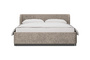 Кровать оснащена металлическим подъемным основанием с гибкими ламелями, под которым находится внутреннее отделение, предназначенное для хранения белья или других предметов. Спинка и царги кровати выполнены из плиты ЛДСтП т.22мм, брусков и березовой фанеры. Настилы из пенополиуретана и синтепона. Подиум сделан из плиты МДФ и брусков. Нижнюю часть подиума украшает металлическая лента из нержавеющей стали с покрытием «матовое золото». Дно бельевого ящика: плита ЛДСтП т.16мм «Белая Гладкая».