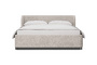 Кровать оснащена металлическим подъемным основанием с гибкими ламелями, под которым находится внутреннее отделение, предназначенное для хранения белья или других предметов. Спинка и царги кровати выполнены из плиты ЛДСтП т.22мм, брусков и березовой фанеры. Настилы из пенополиуретана и синтепона. Подиум сделан из плиты МДФ и брусков. Нижнюю часть подиума украшает металлическая лента из нержавеющей стали с покрытием «матовое золото». Дно бельевого ящика: плита ЛДСтП т.16мм «Белая Гладкая».