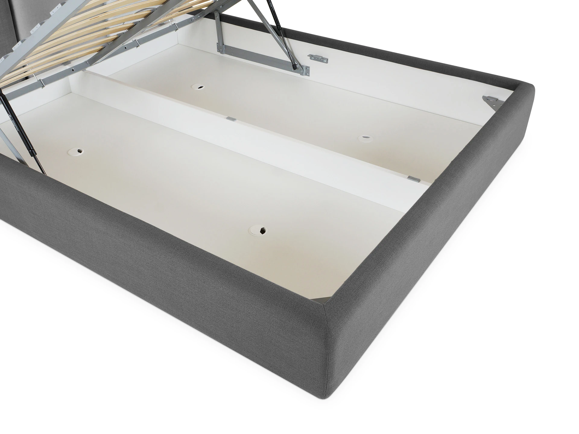 В основании кровати установлены пастиковые опоры H49 мм. Лицевой чехол каркаса - съемный.