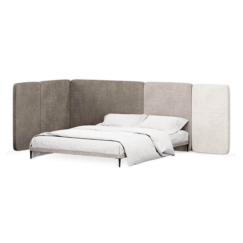 Кровать можно персонализировать при помощи навесных панелей 5 конфигураций. Имеют разную ширину и выполняются в любых цветовых сочетаниях. Крепятся к стене с помощью металлических навесов с регулировкой по высоте. Панели комбинируются по-разному и адаптируются к спальням любых размеров. Можно оформить как традиционное высокое изголовье, так и большой «мягкий уголок». Который сделает вашу территорию идеального сна уютнее, теплее, а также подарит чувство защищенности и расслабления. Кровать Licata органично впишется в пространства разной стилистики от современной классики до минимализма и поможет вам максимально насладиться домашним комфортом.