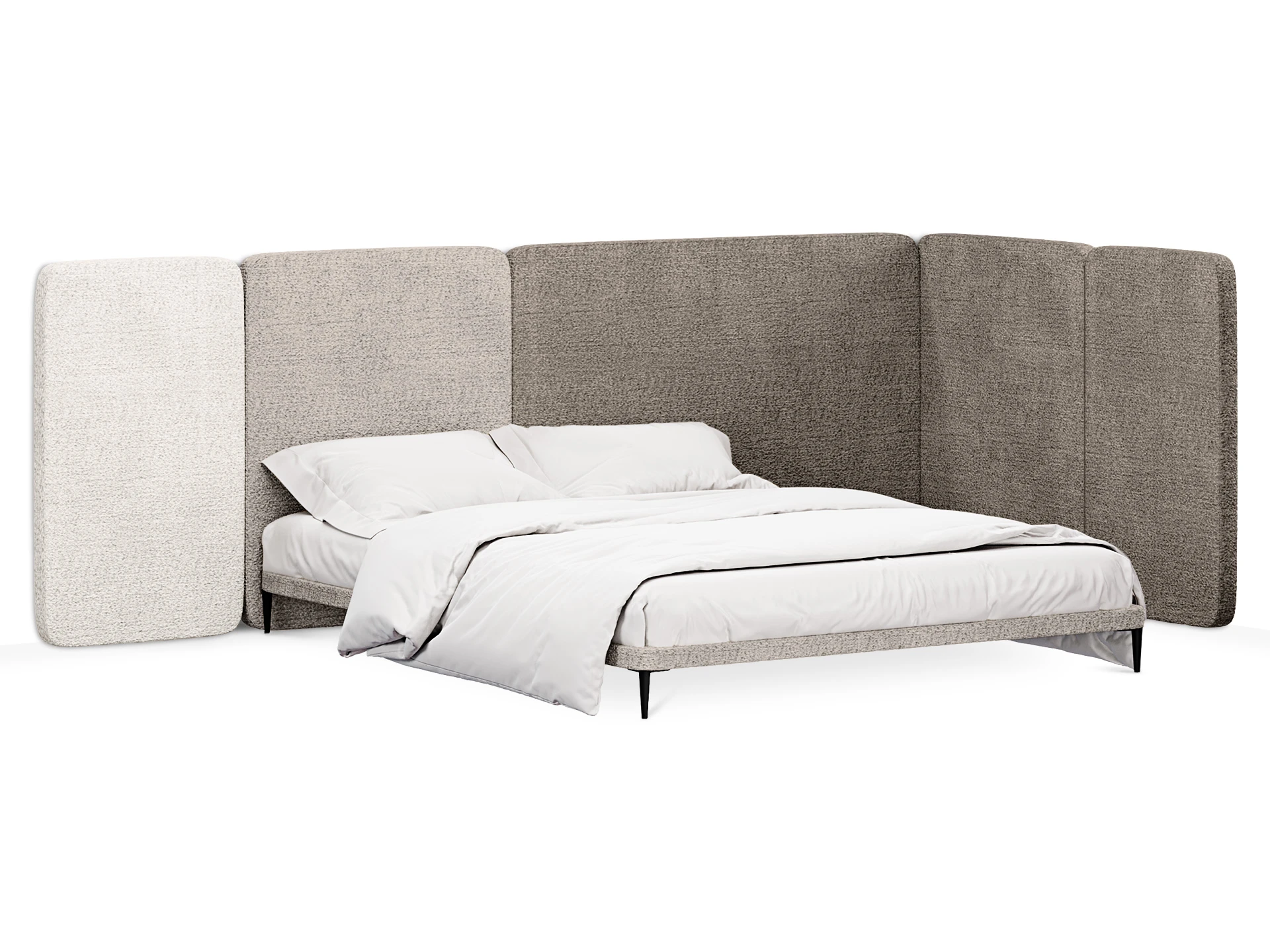 Кровать можно персонализировать при помощи навесных панелей 5 конфигураций. Имеют разную ширину и выполняются в любых цветовых сочетаниях. Крепятся к стене с помощью металлических навесов с регулировкой по высоте. Панели комбинируются по-разному и адаптируются к спальням любых размеров. Можно оформить как традиционное высокое изголовье, так и большой «мягкий уголок». Который сделает вашу территорию идеального сна уютнее, теплее, а также подарит чувство защищенности и расслабления. Кровать Licata органично впишется в пространства разной стилистики от современной классики до минимализма и поможет вам максимально насладиться домашним комфортом.