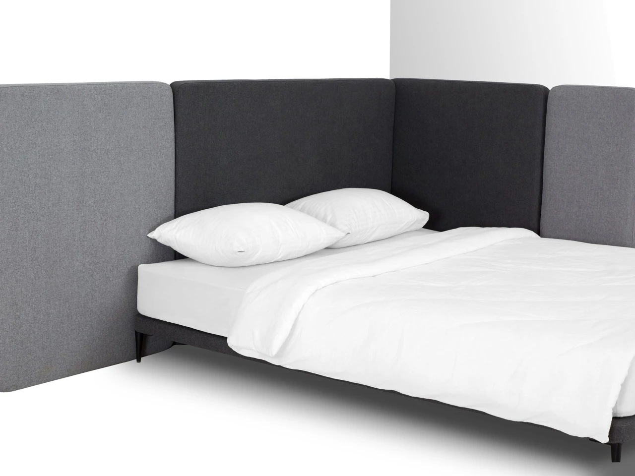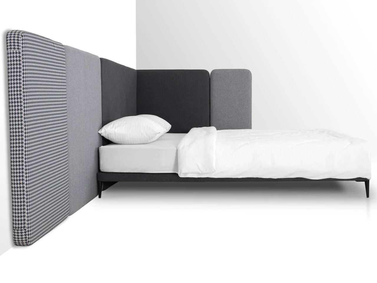 Кровать можно персонализировать при помощи навесных панелей 5 конфигураций. Имеют разную ширину и выполняются в любых цветовых сочетаниях. Крепятся к стене с помощью металлических навесов с регулировкой по высоте. Панели комбинируются по-разному и адаптируются к спальням любых размеров. Можно оформить как традиционное высокое изголовье, так и большой «мягкий уголок». Который сделает вашу территорию идеального сна уютнее, теплее, а также подарит чувство защищенности и расслабления. Кровать Licata органично впишется в пространства разной стилистики от современной классики до минимализма и поможет вам максимально насладиться домашним комфортом.