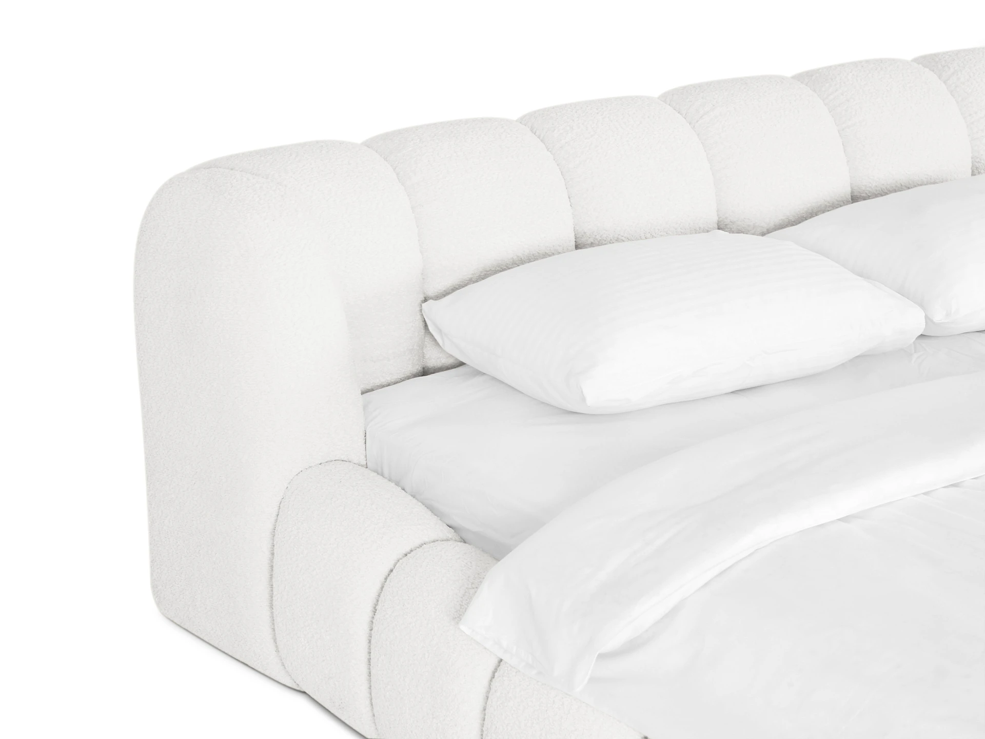 Спинка кровати – сборная, состоит из 8-ми модулей. В собранном виде, внешний вид спинки имитирует декоративную утяжку мягкого элемента.