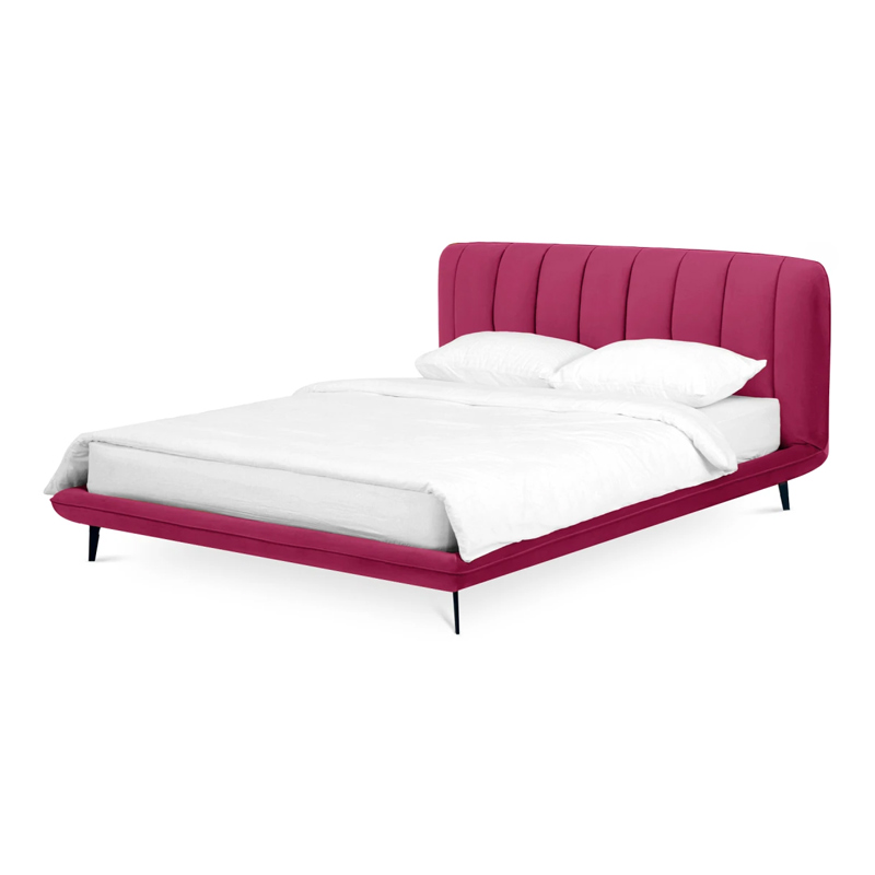 Прочные ножки из металла незаметно приподнимают корпус над полом. Поэтому кровать смотрится воздушно. Также это упрощает уборку. Мягкие изящные царги плавно перетекают в изголовье, единство с которым подчеркивается рельефным кантом.