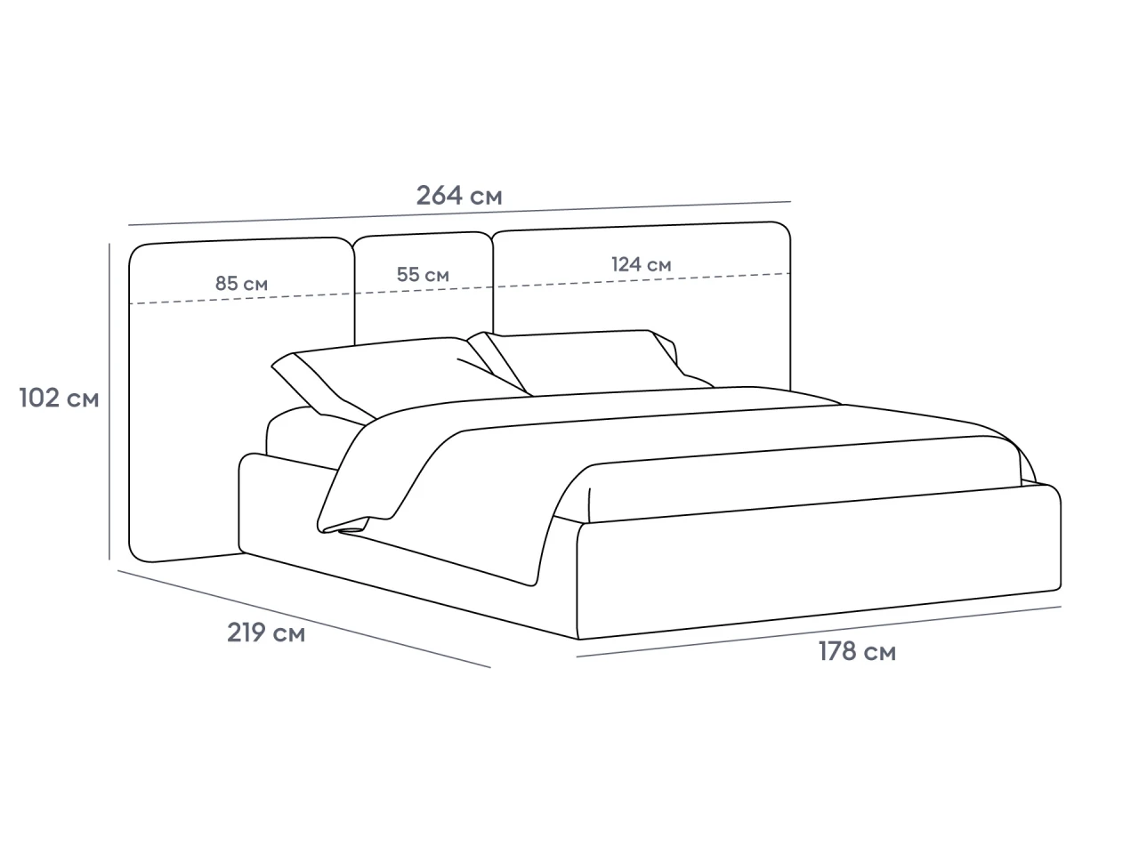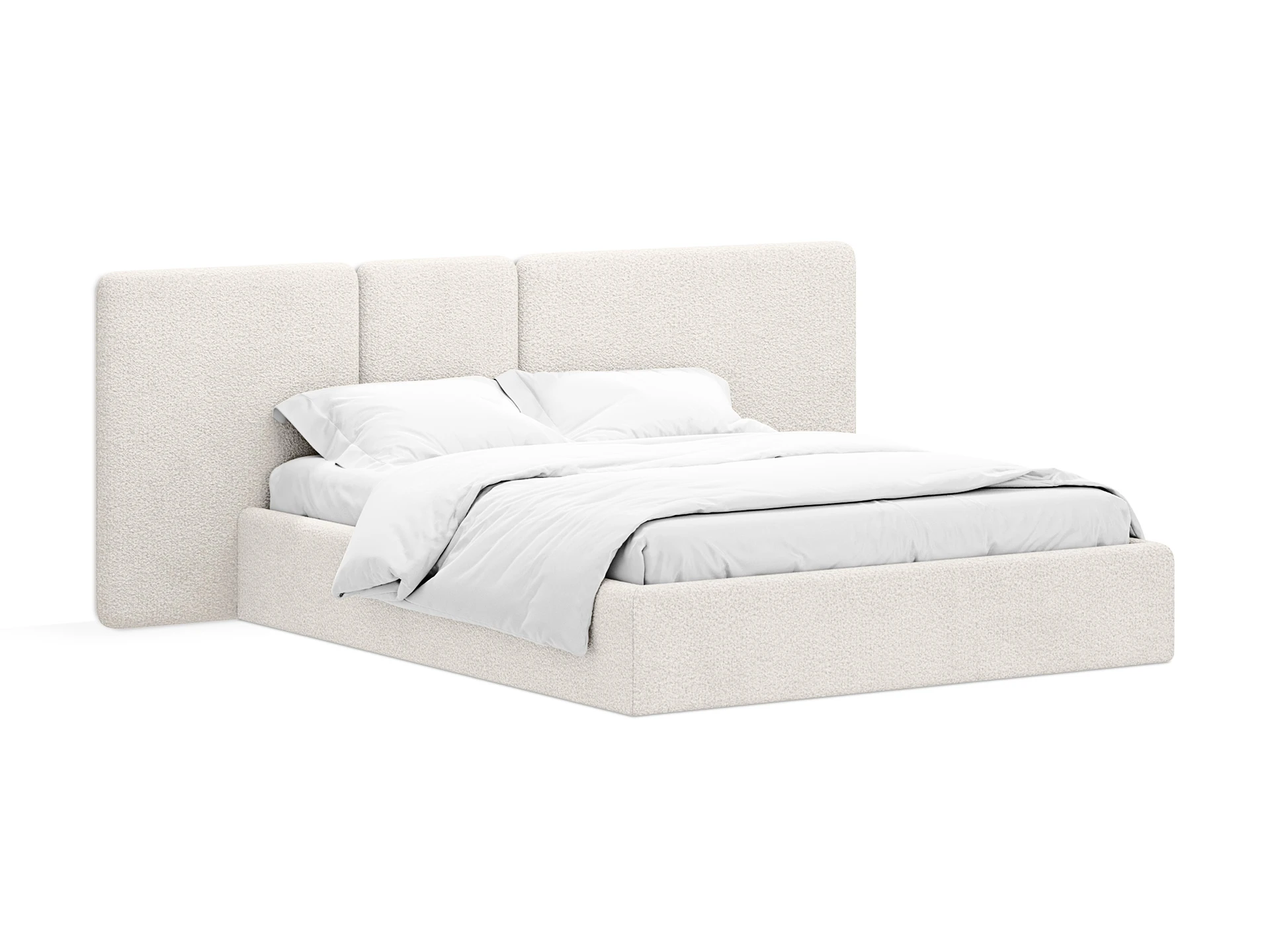 Изголовье добавляет осязаемого тепла, уюта в интерьер. Также его акцентная геометрия делает пространство интереснее, глубже, фактурнее. На него удобно опереться, когда вы хотите почитать или посмотреть кино. Мягкие царги обеспечивают дополнительный комфорт и удобство, идеально дополняя общую концепцию модели.