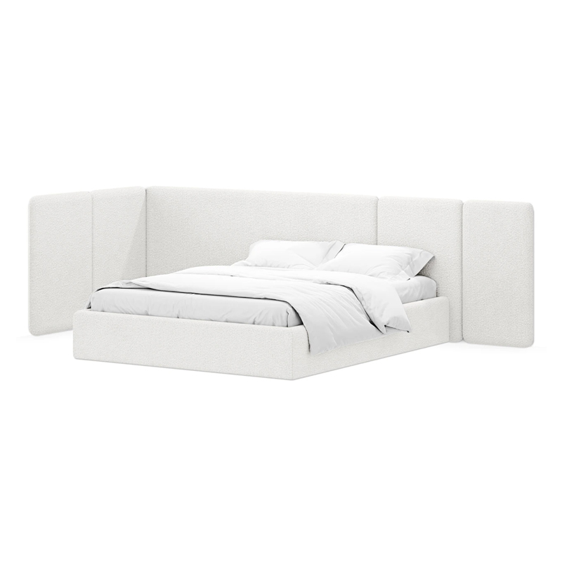 Изголовье добавляет осязаемого тепла, уюта в интерьер. Также его акцентная геометрия делает пространство интереснее, глубже, фактурнее. На него удобно опереться, когда вы хотите почитать или посмотреть кино. Мягкие царги обеспечивают дополнительный комфорт и удобство, идеально дополняя общую концепцию модели.