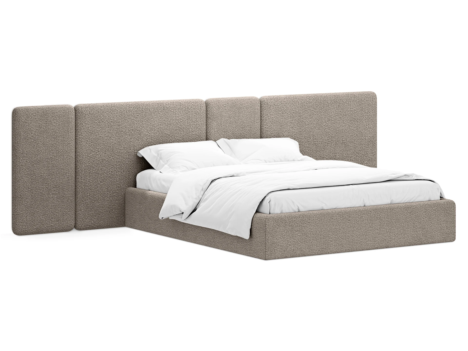 Изголовье добавляет осязаемого тепла, уюта в интерьер. Также его акцентная геометрия делает пространство интереснее, глубже, фактурнее. На него удобно опереться, когда вы хотите почитать или посмотреть кино. Мягкие царги обеспечивают дополнительный комфорт и удобство, идеально дополняя общую концепцию модели.