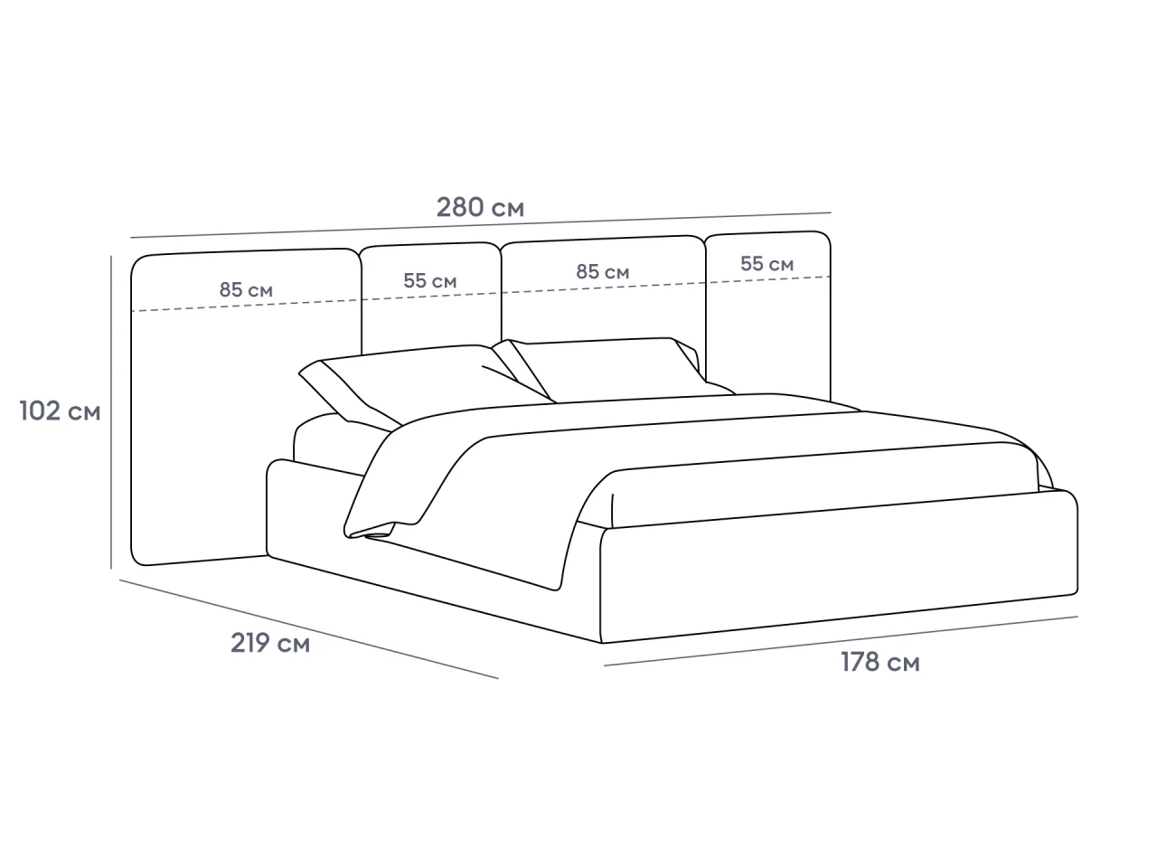 Изголовье добавляет осязаемого тепла, уюта в интерьер. Также его акцентная геометрия делает пространство интереснее, глубже, фактурнее. На него удобно опереться, когда вы хотите почитать или посмотреть кино. Мягкие царги обеспечивают дополнительный комфорт и удобство, идеально дополняя общую концепцию модели.