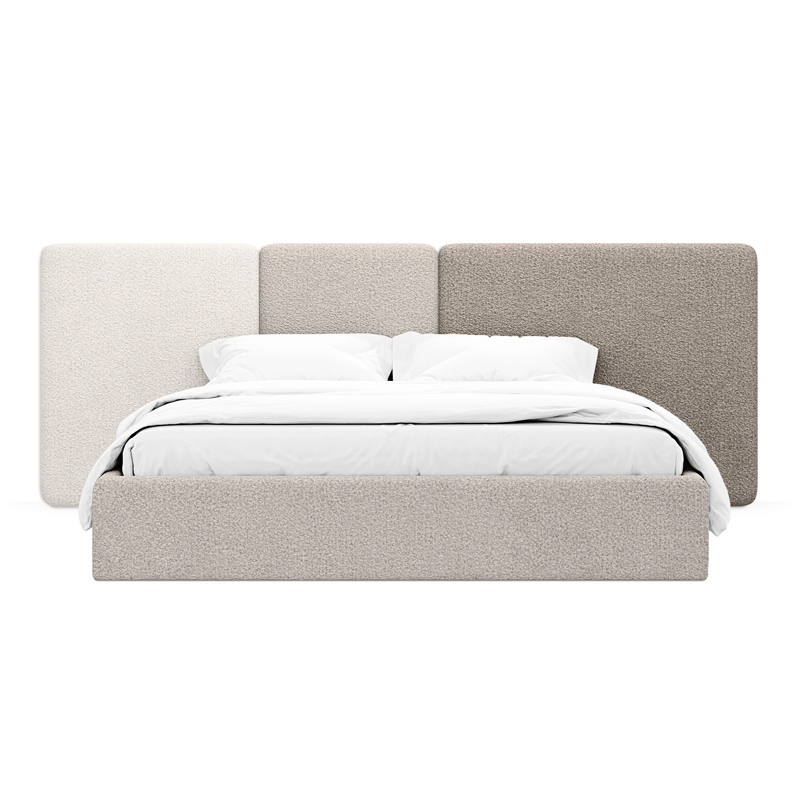 Модель рассчитана на стандартное спальное место 1800х2000 мм. Мягкое изголовье обеспечивает комфорт при отдыхе сидя (чтение, просмотр видео). Благодаря модульной структуре панелей кровать легко адаптируется под геометрию стены и интерьер, выступая центральным элементом спальни. Подходит для современных жилых пространств.