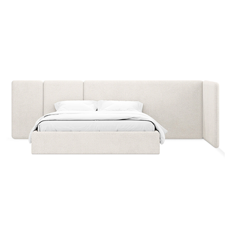 Модель рассчитана на стандартное спальное место 1800х2000 мм. Мягкое изголовье обеспечивает комфорт при отдыхе сидя (чтение, просмотр видео). Благодаря модульной структуре панелей кровать легко адаптируется под геометрию стены и интерьер, выступая центральным элементом спальни. Подходит для современных жилых пространств.